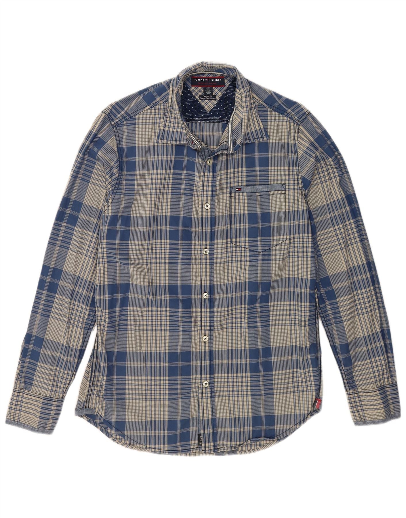 TOMMY HILFIGER Chemise sur mesure pour homme en coton à petits carreaux bleus