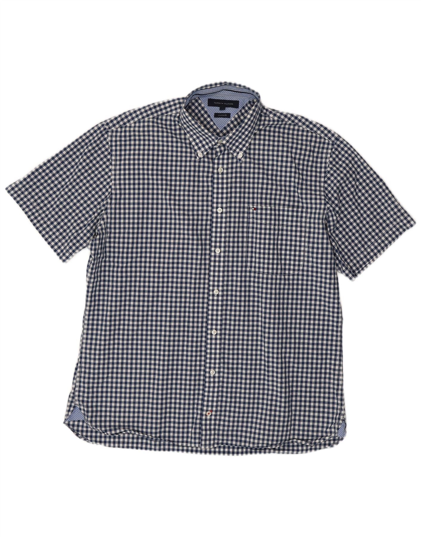 TOMMY HILFIGER Chemise à manches courtes sur mesure pour homme XL Bleu marine vichy