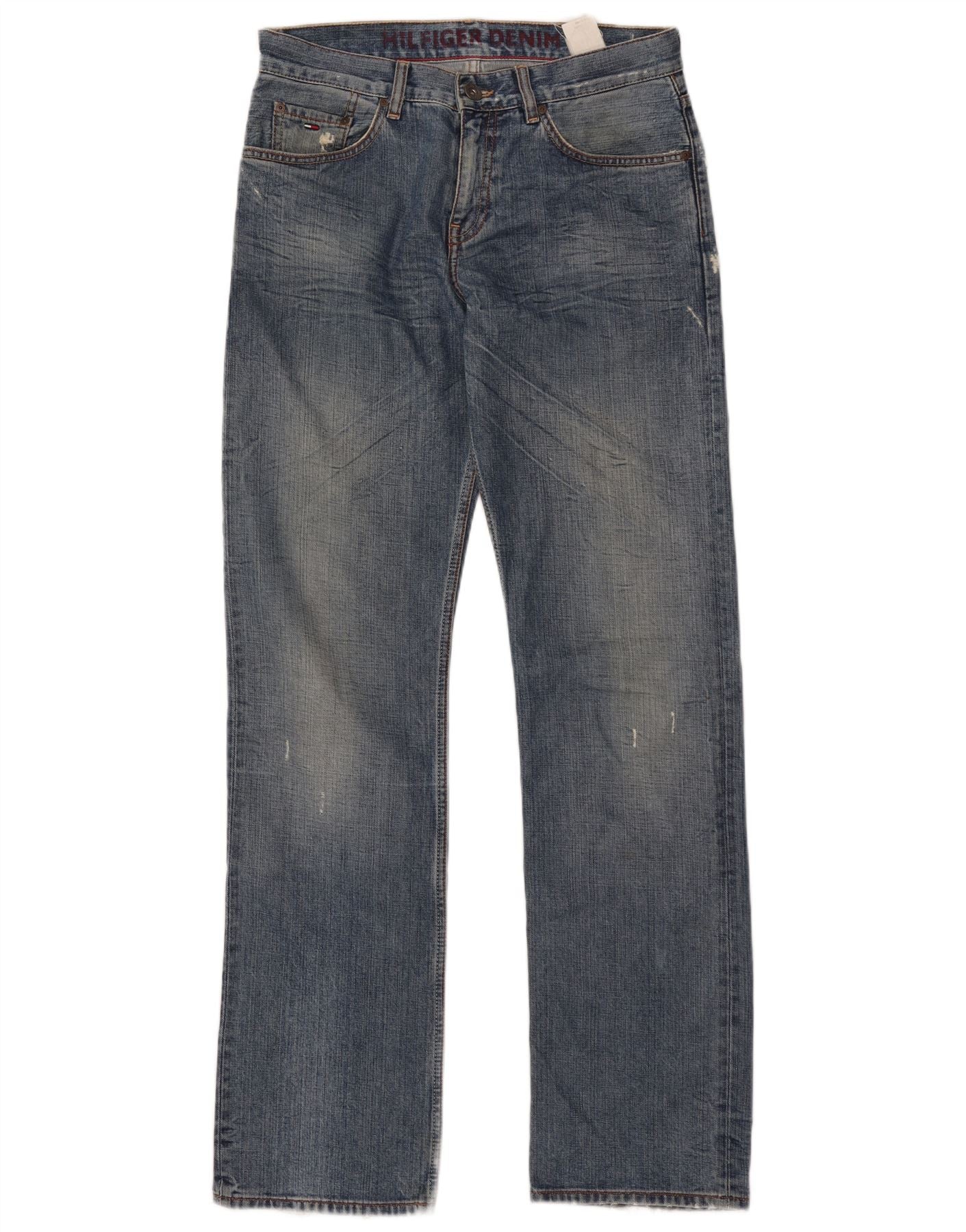 Tommy Hilfiger Jean droit vieilli pour homme W32 L35 Bleu