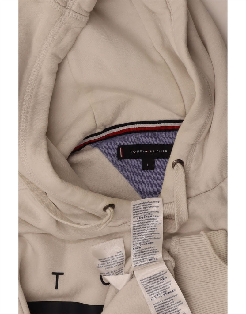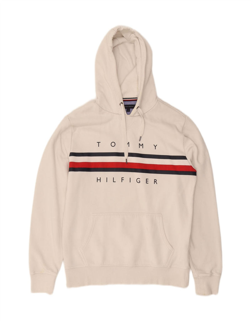 TOMMY HILFIGER Mens Graphic Hoodie Jumper Small White Cotton