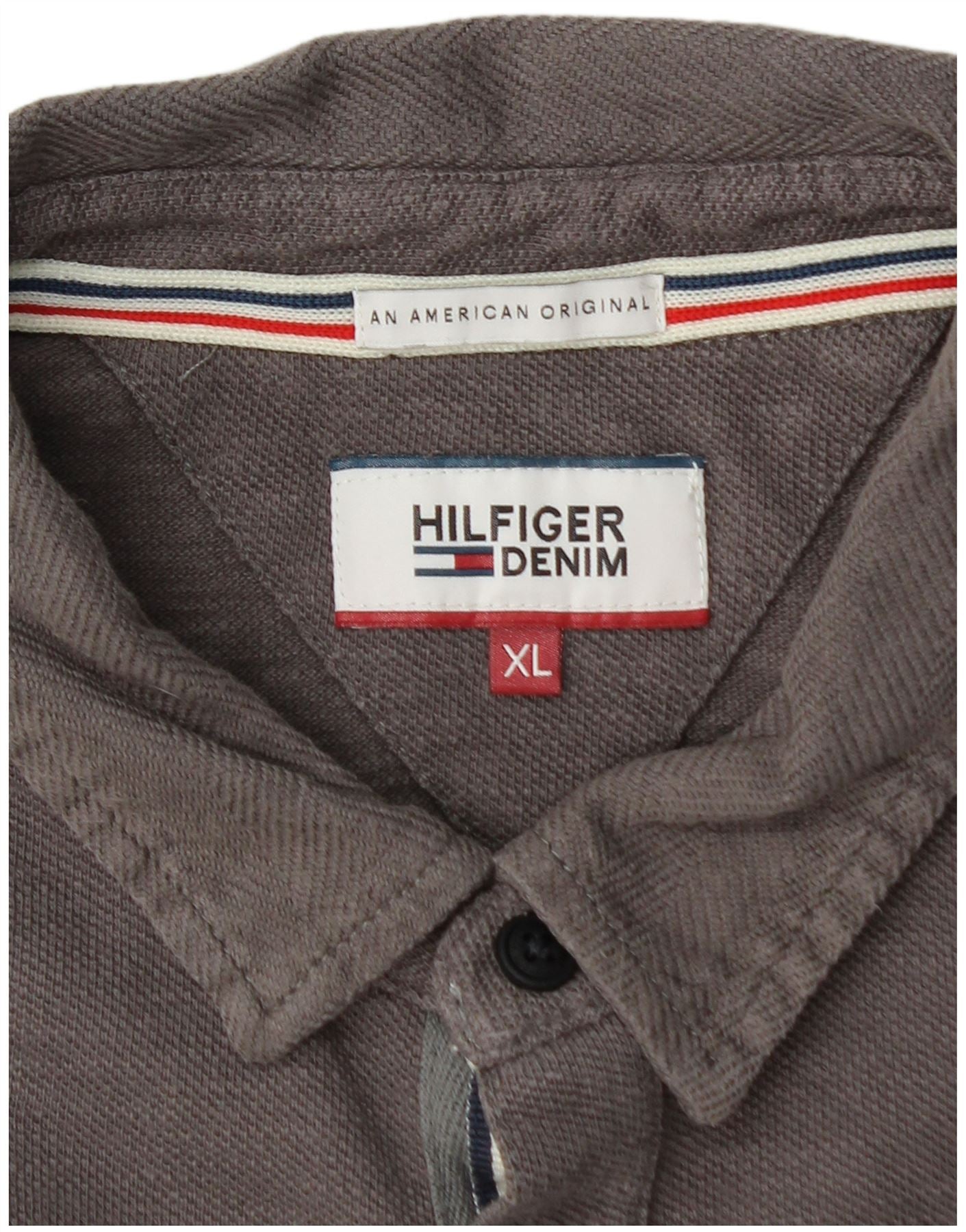 TOMMY HILFIGER Polo Graphique à Manches Longues Homme XL Gris