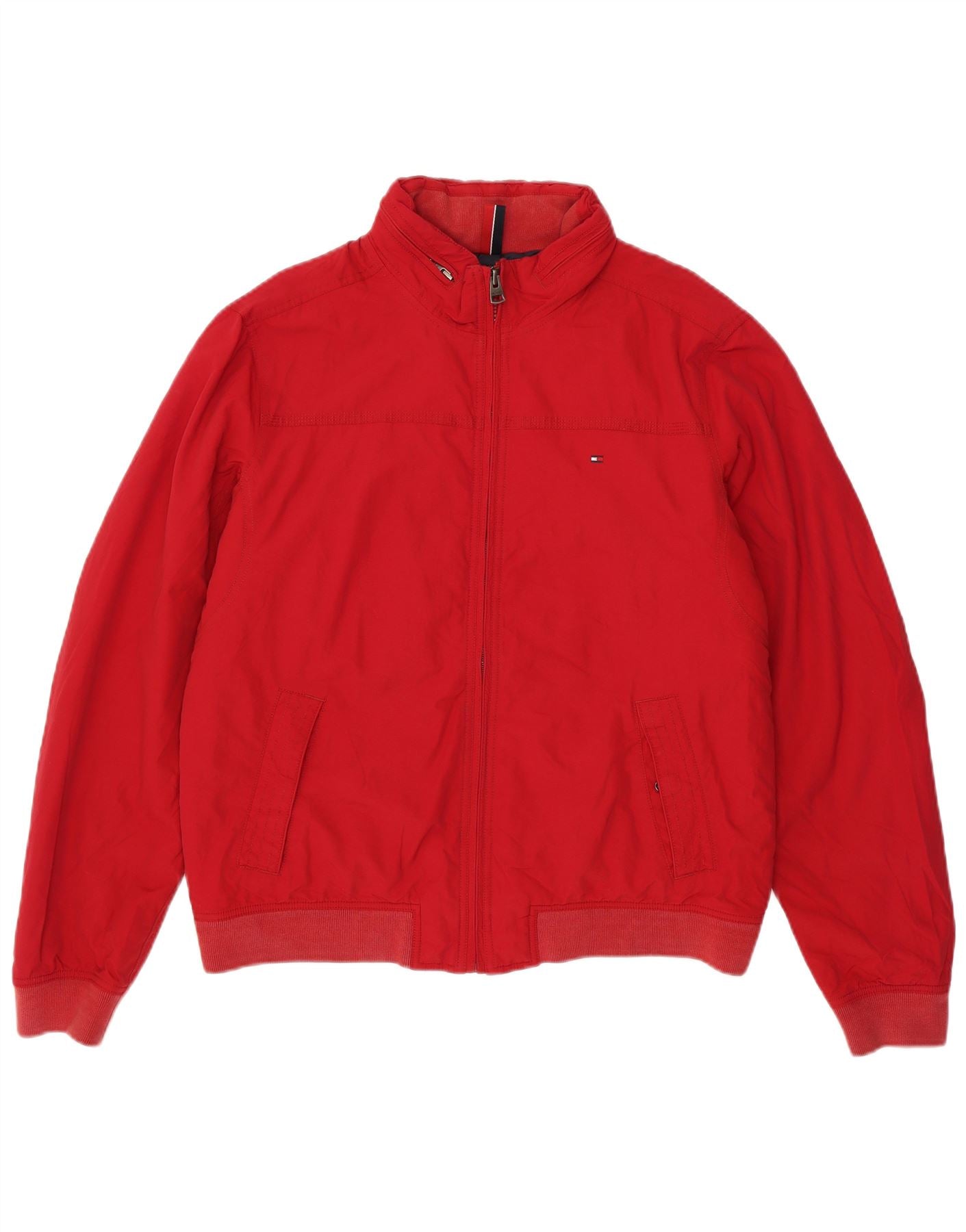TOMMY HILFIGER Veste Bomber à Capuche Homme UK 42 XL Nylon Rouge