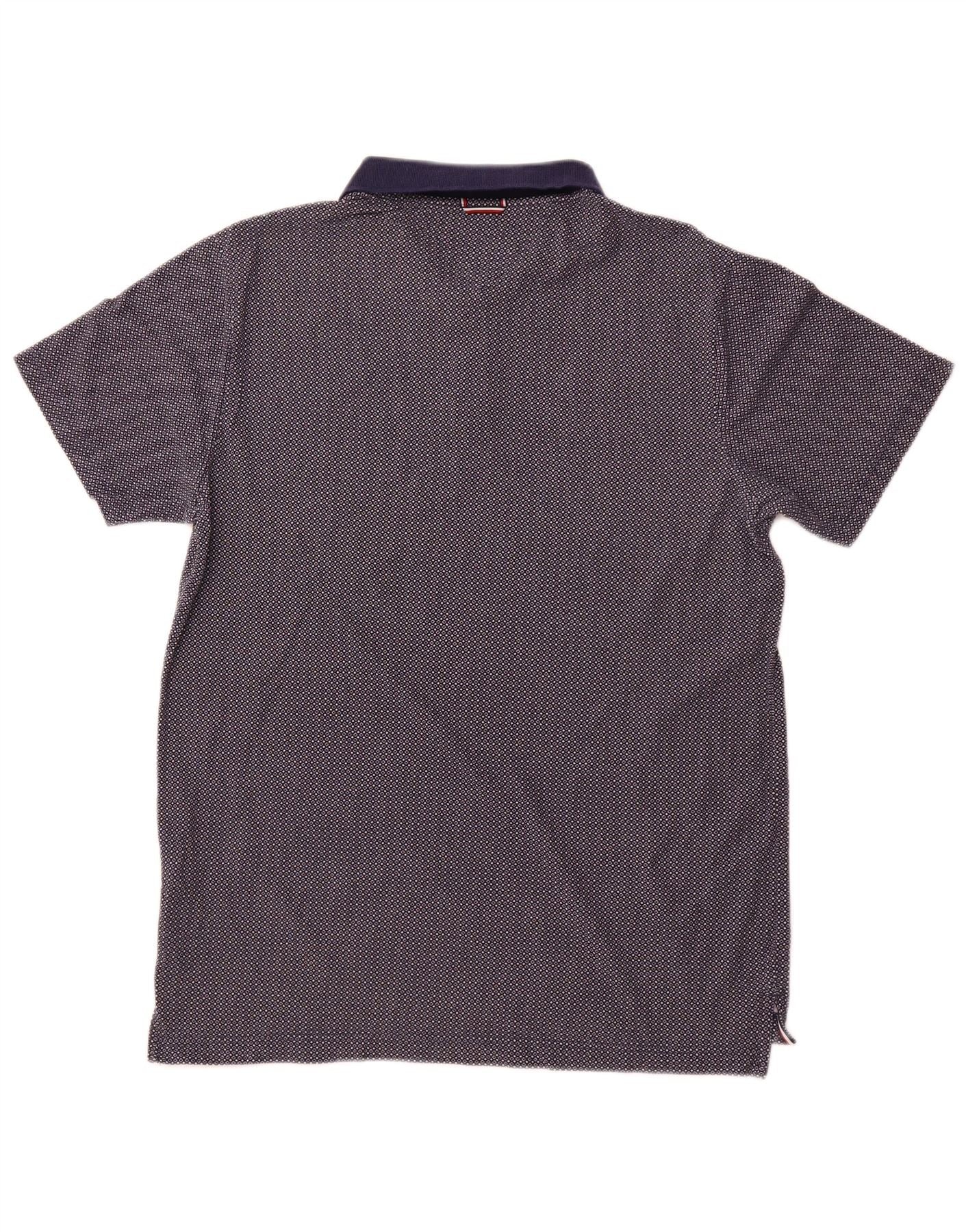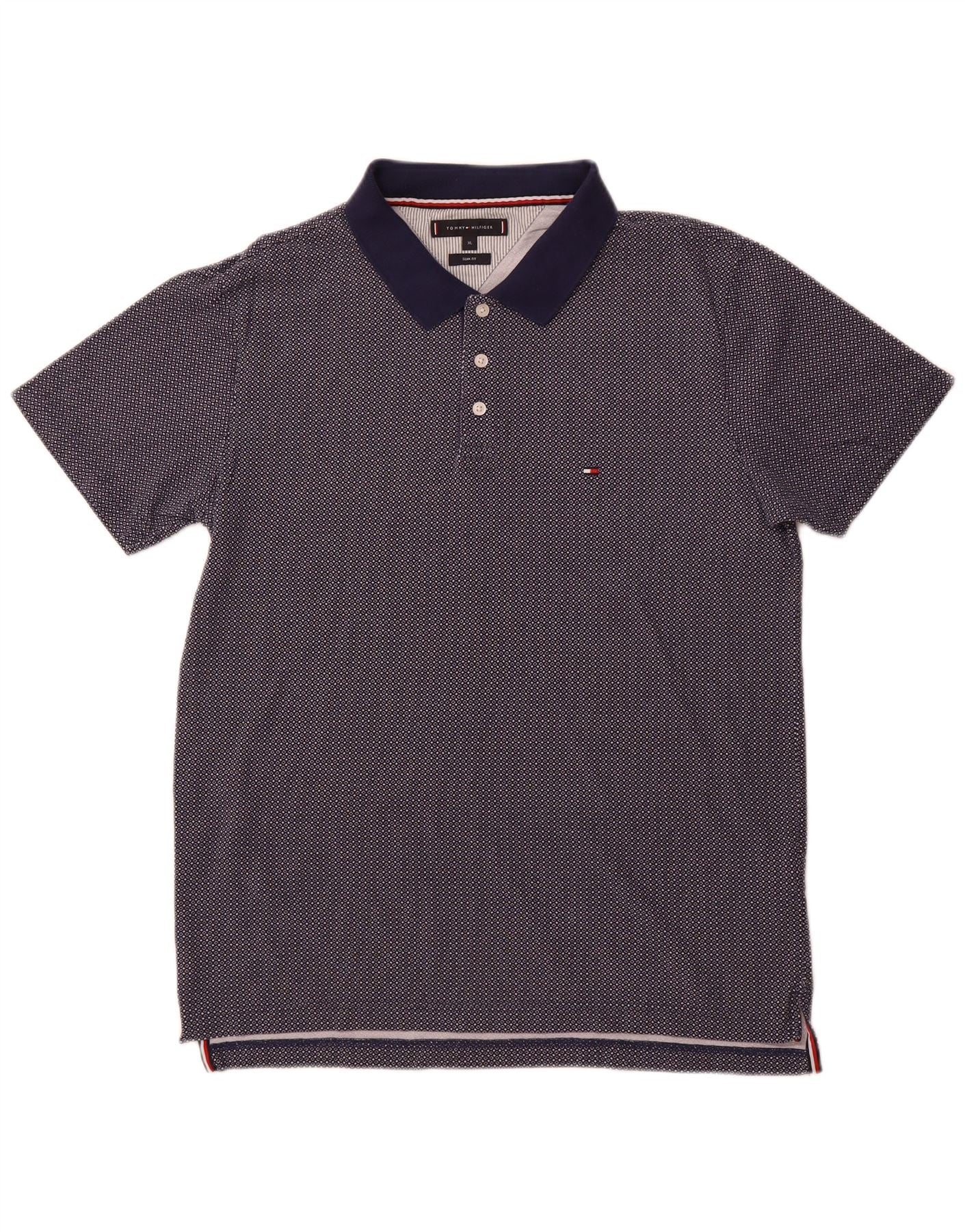 TOMMY HILFIGER Polo Homme XL Bleu Marine Tacheté Coton