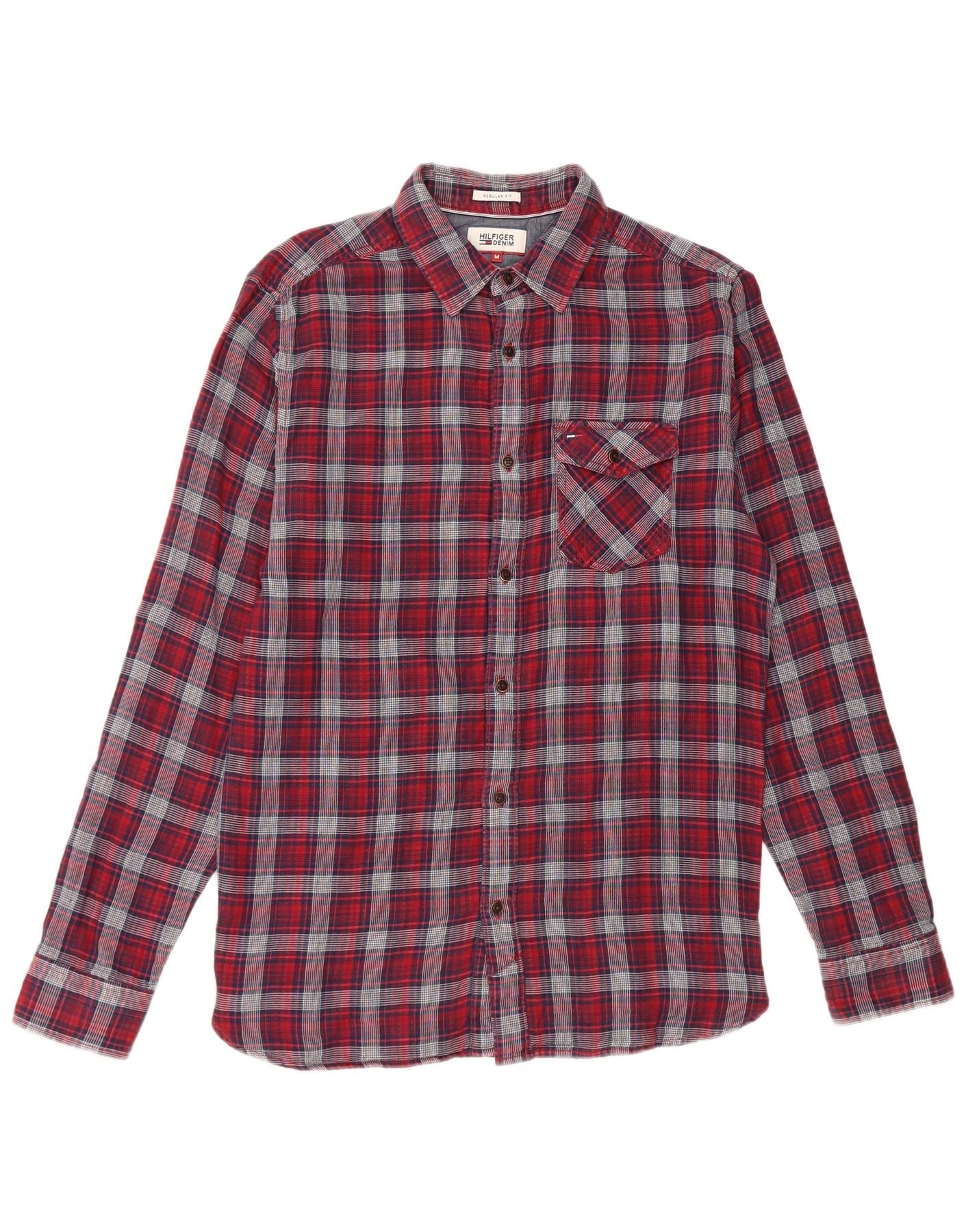 Tommy Hilfiger Chemise Regular Fit en Flanelle Homme Rouge Moyen à Carreaux en Coton