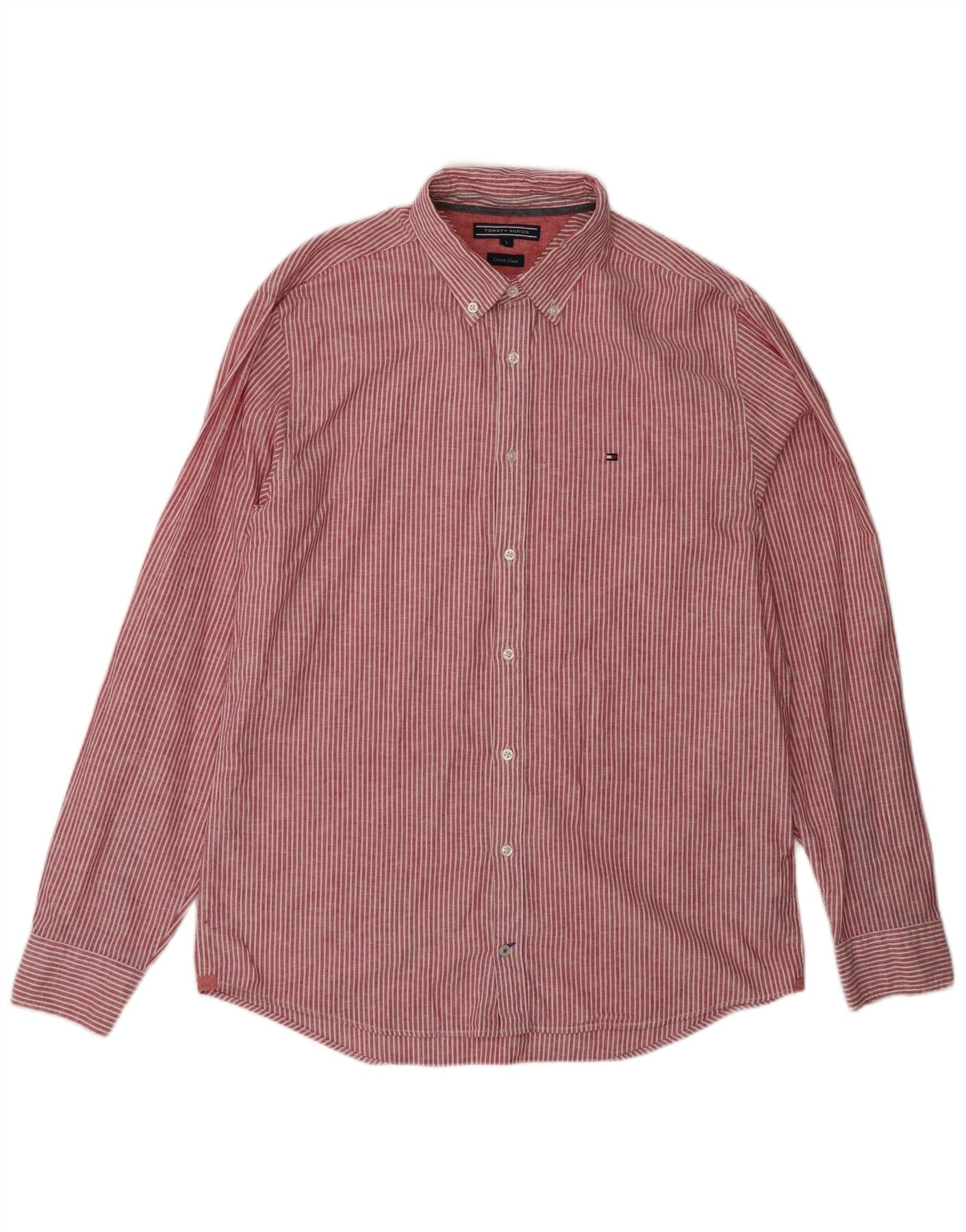 TOMMY HILFIGER Chemise coupe classique pour homme en coton à fines rayures rouges