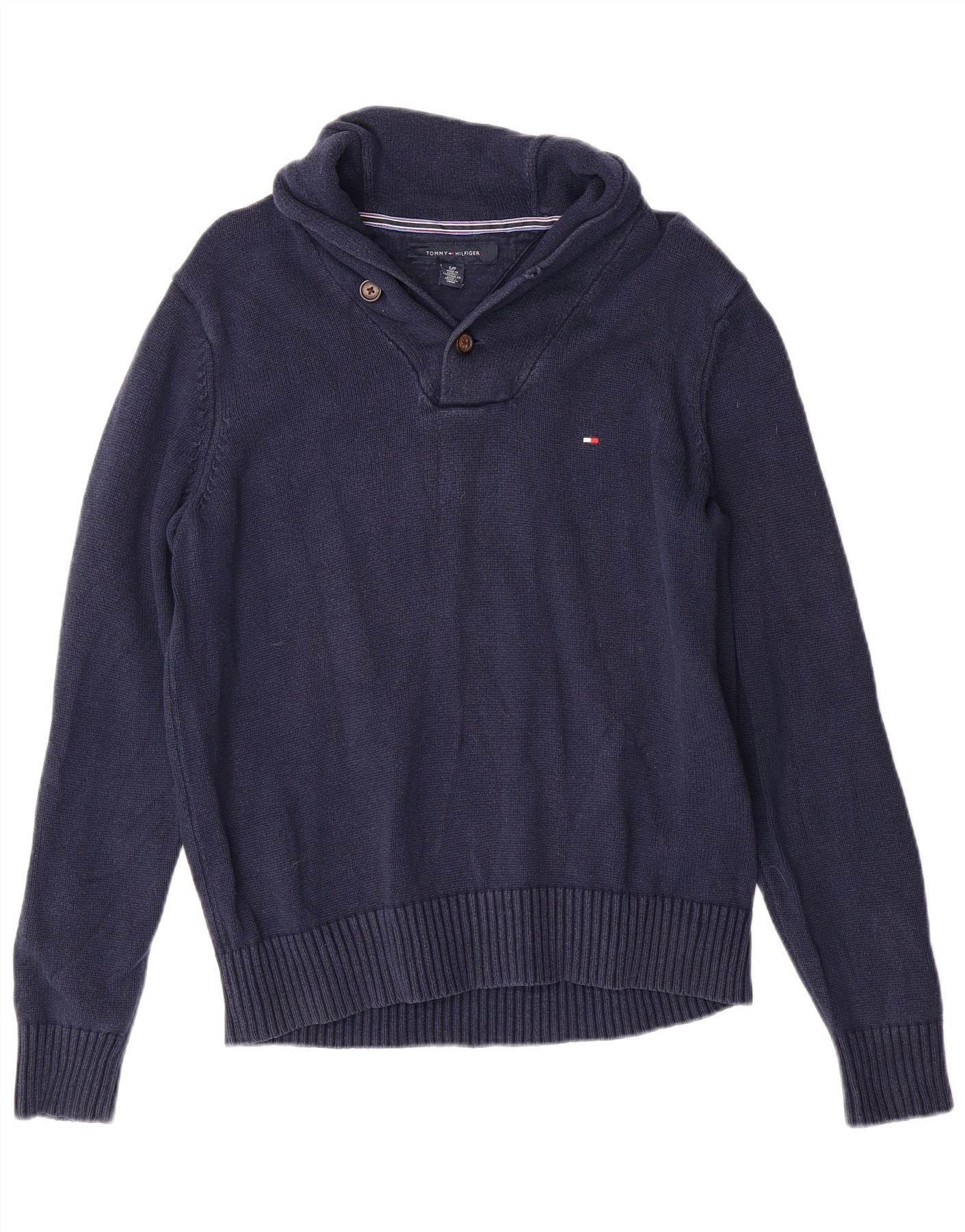 TOMMY HILFIGER Pull à col châle pour homme Petit coton bleu marine