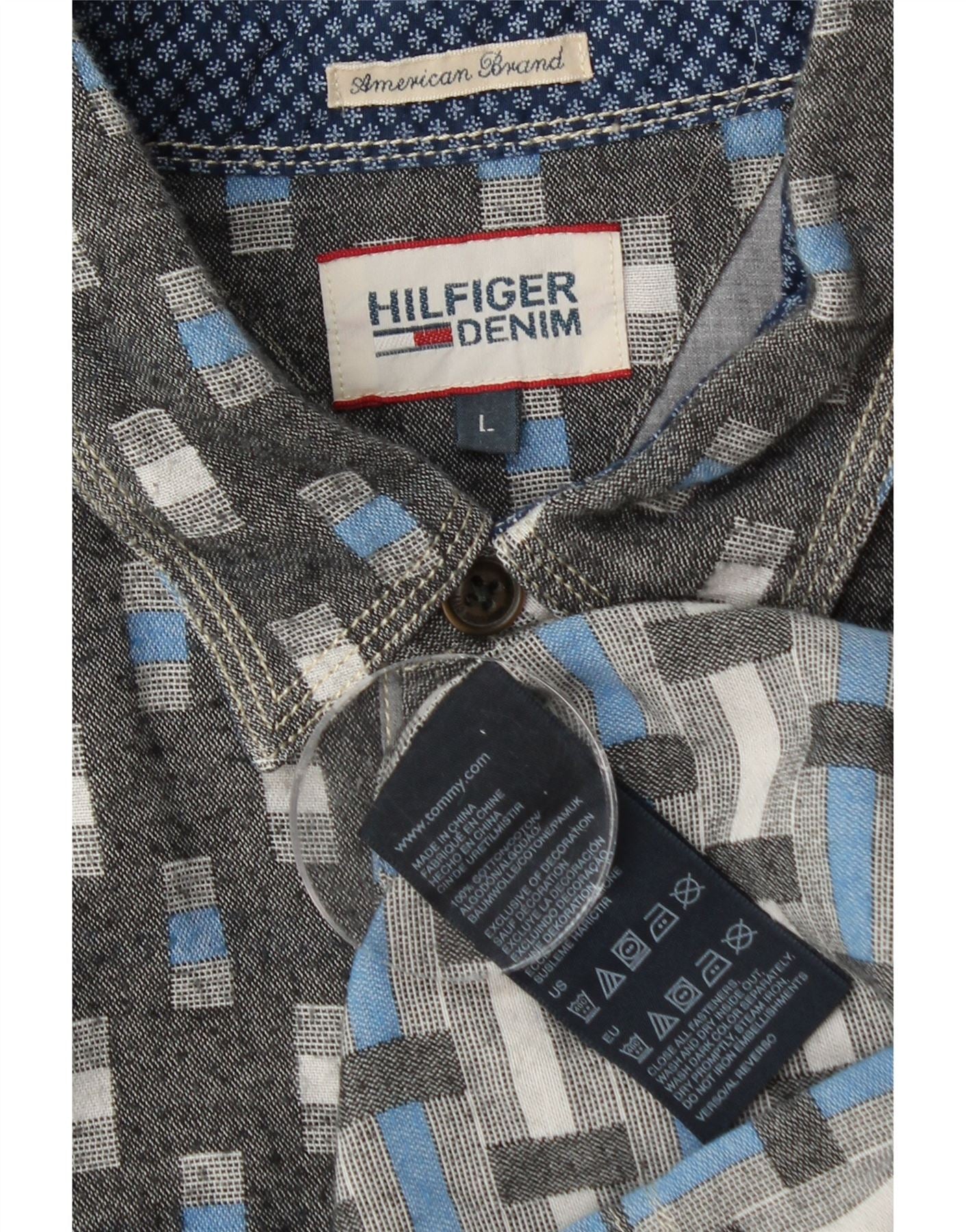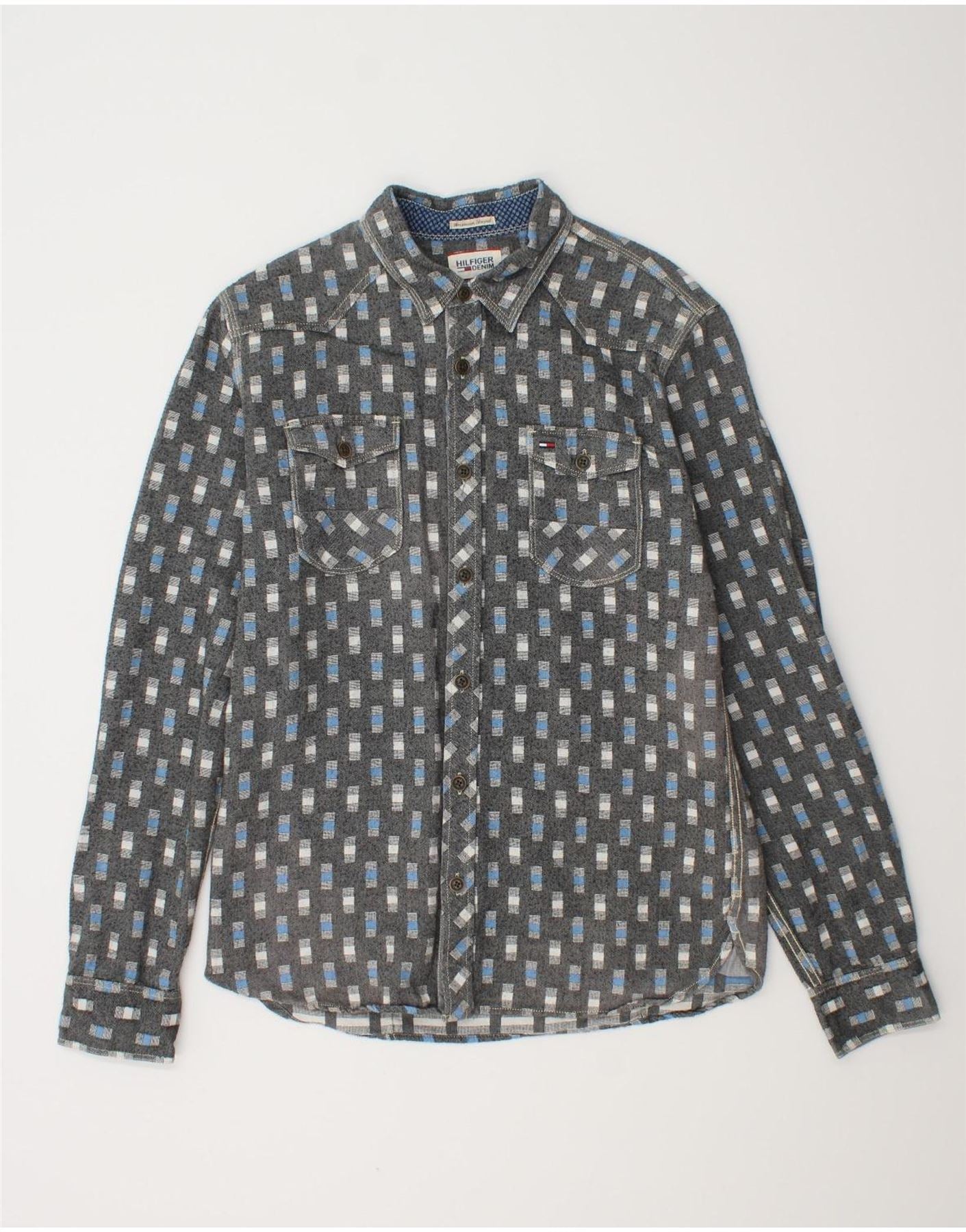 TOMMY HILFIGER Chemise Homme Large Gris Géométrique Coton