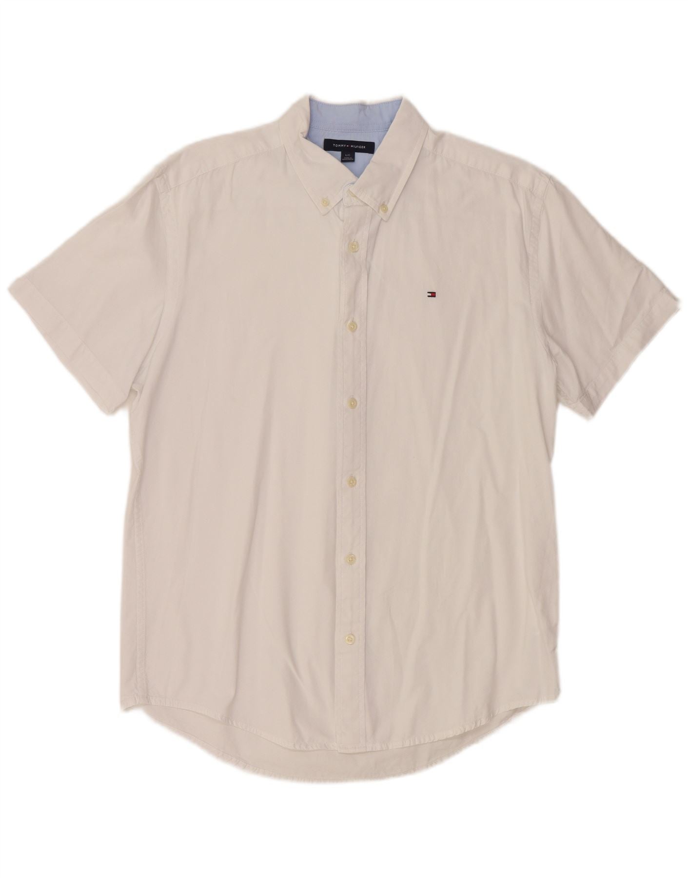 TOMMY HILFIGER Chemise à manches courtes pour homme Large Blanc Coton