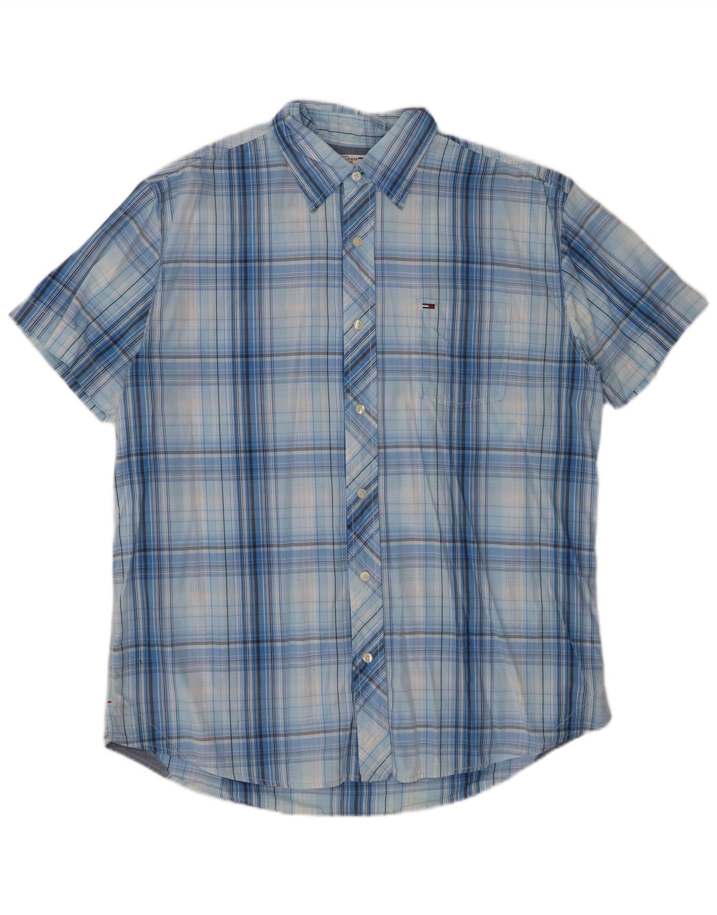 TOMMY HILFIGER Chemise à Manches Courtes Homme XL Bleu Carreaux Coton