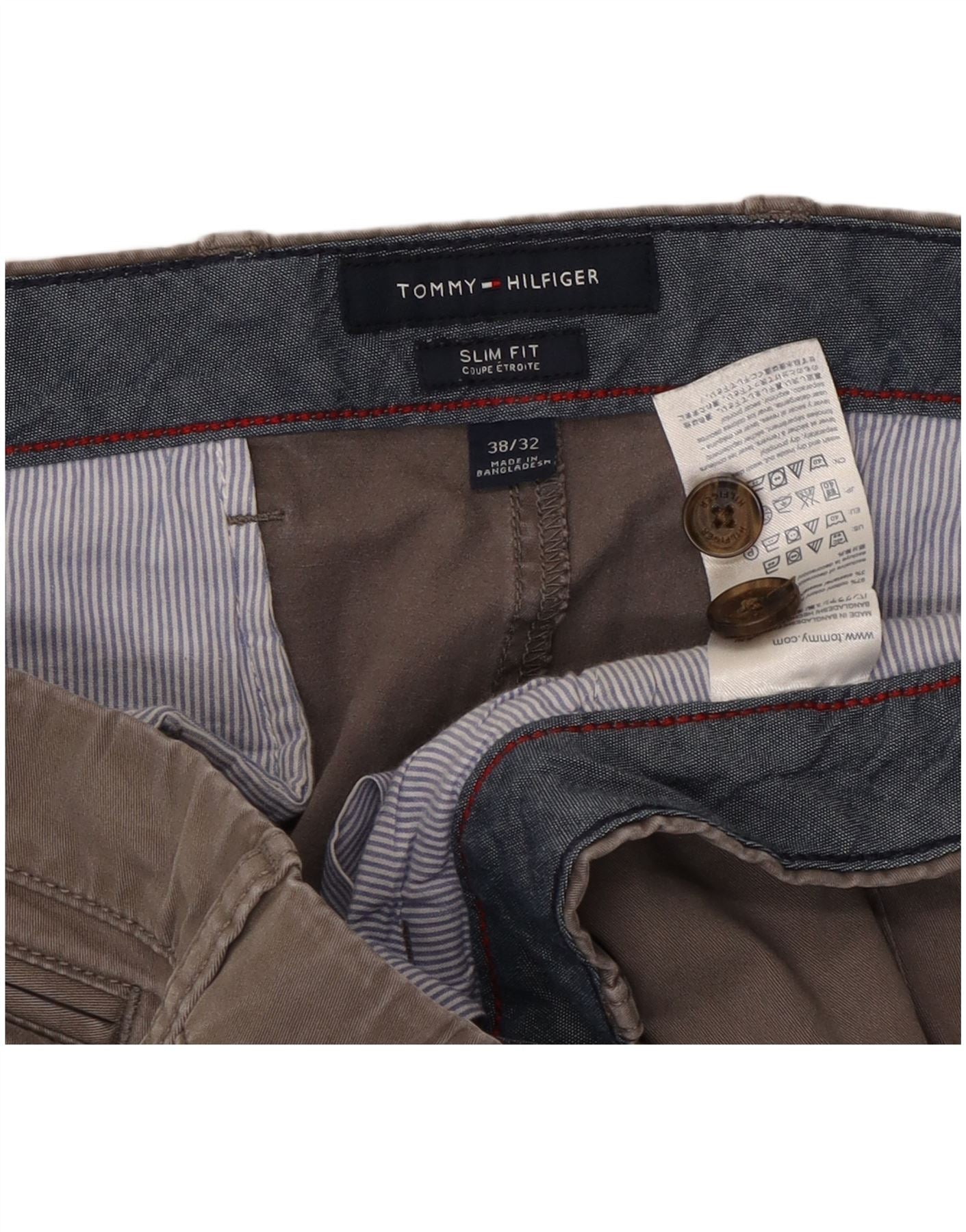 TOMMY HILFIGER Pantalon Chino Slim Fit Homme W38 L29 Gris Coton