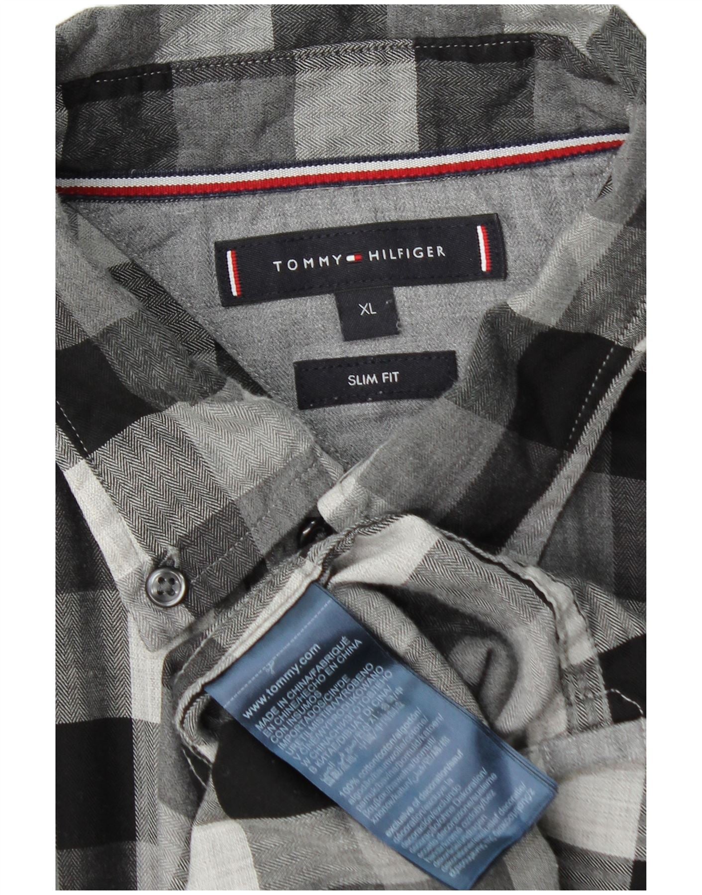 Tommy Hilfiger Chemise slim en flanelle pour homme XL Gris à carreaux en coton