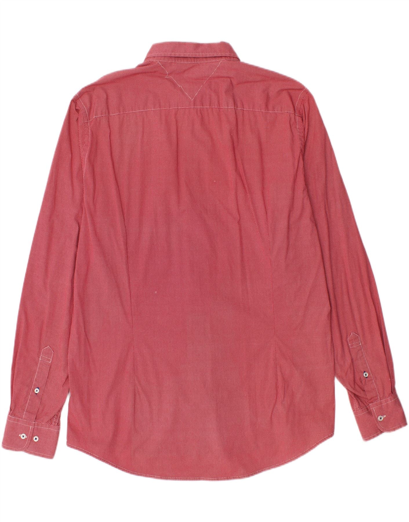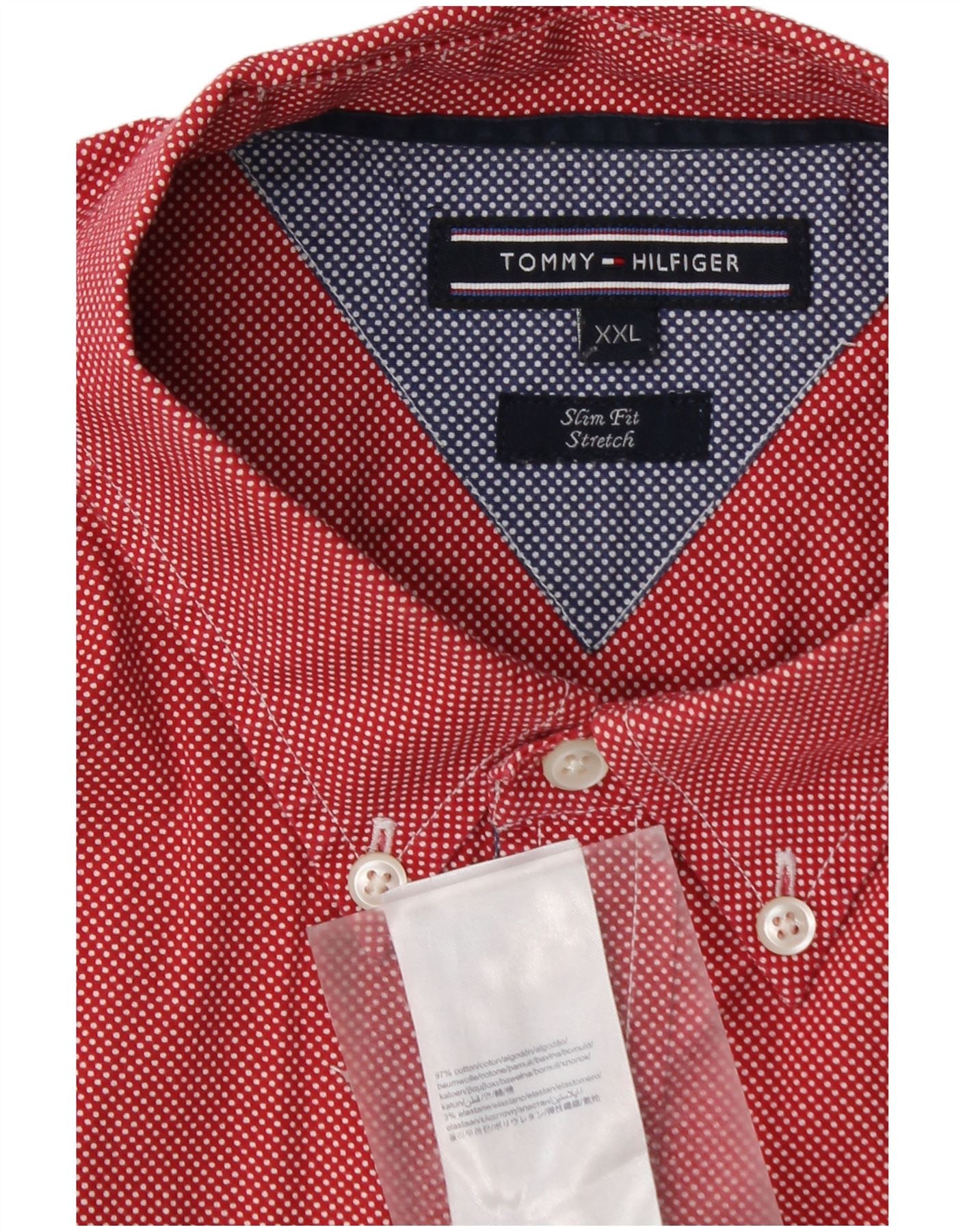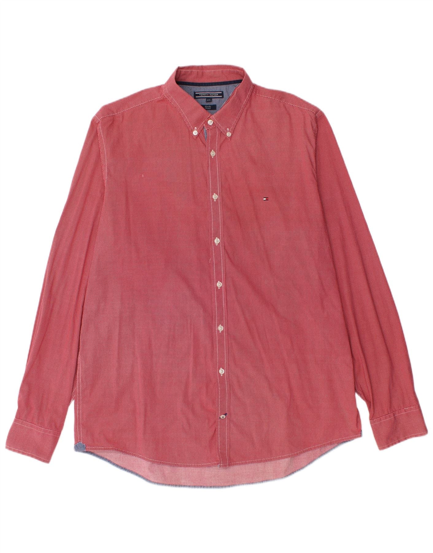 TOMMY HILFIGER Chemise Slim Fit Stretch pour Homme 2XL Coton à Pois Rouge