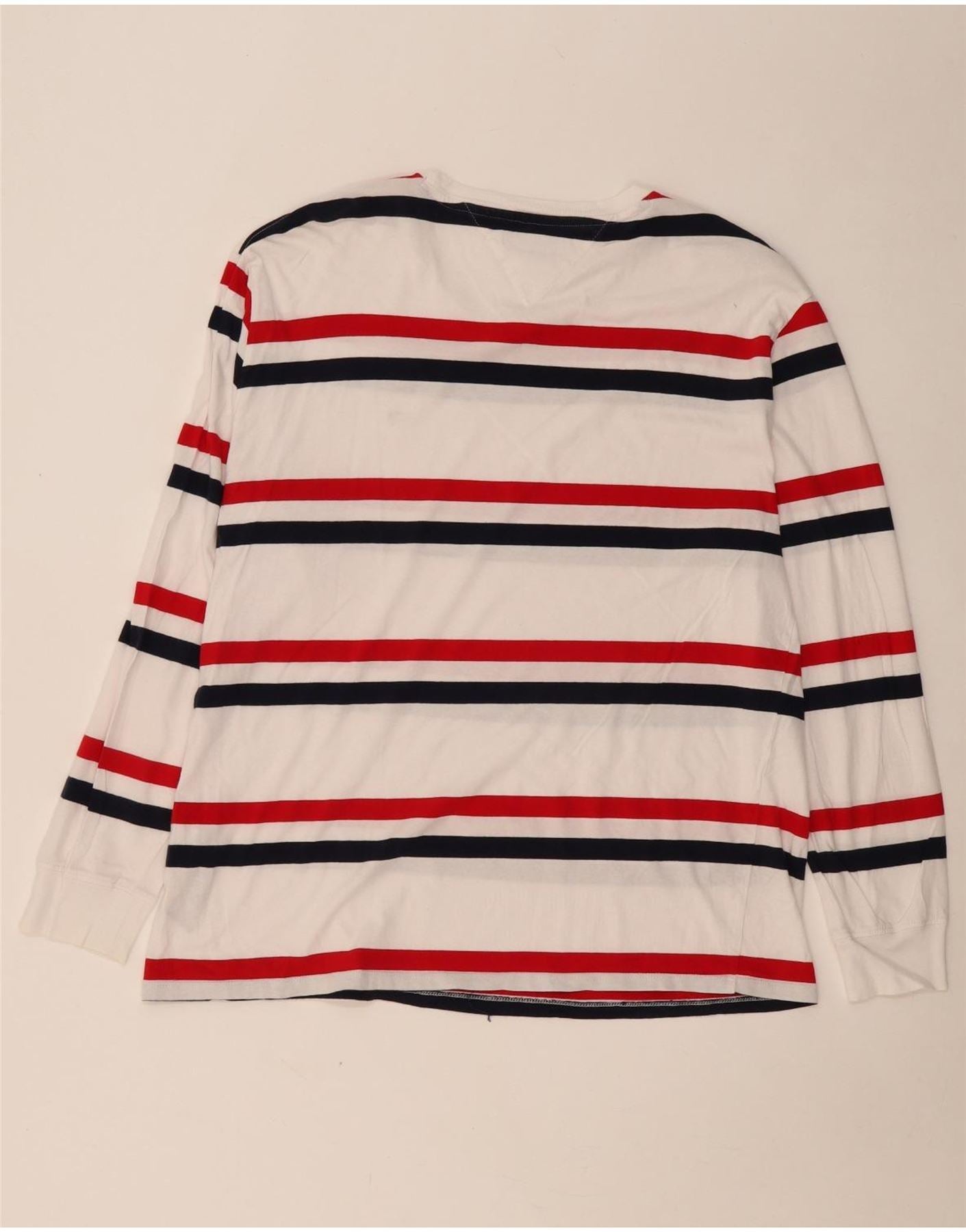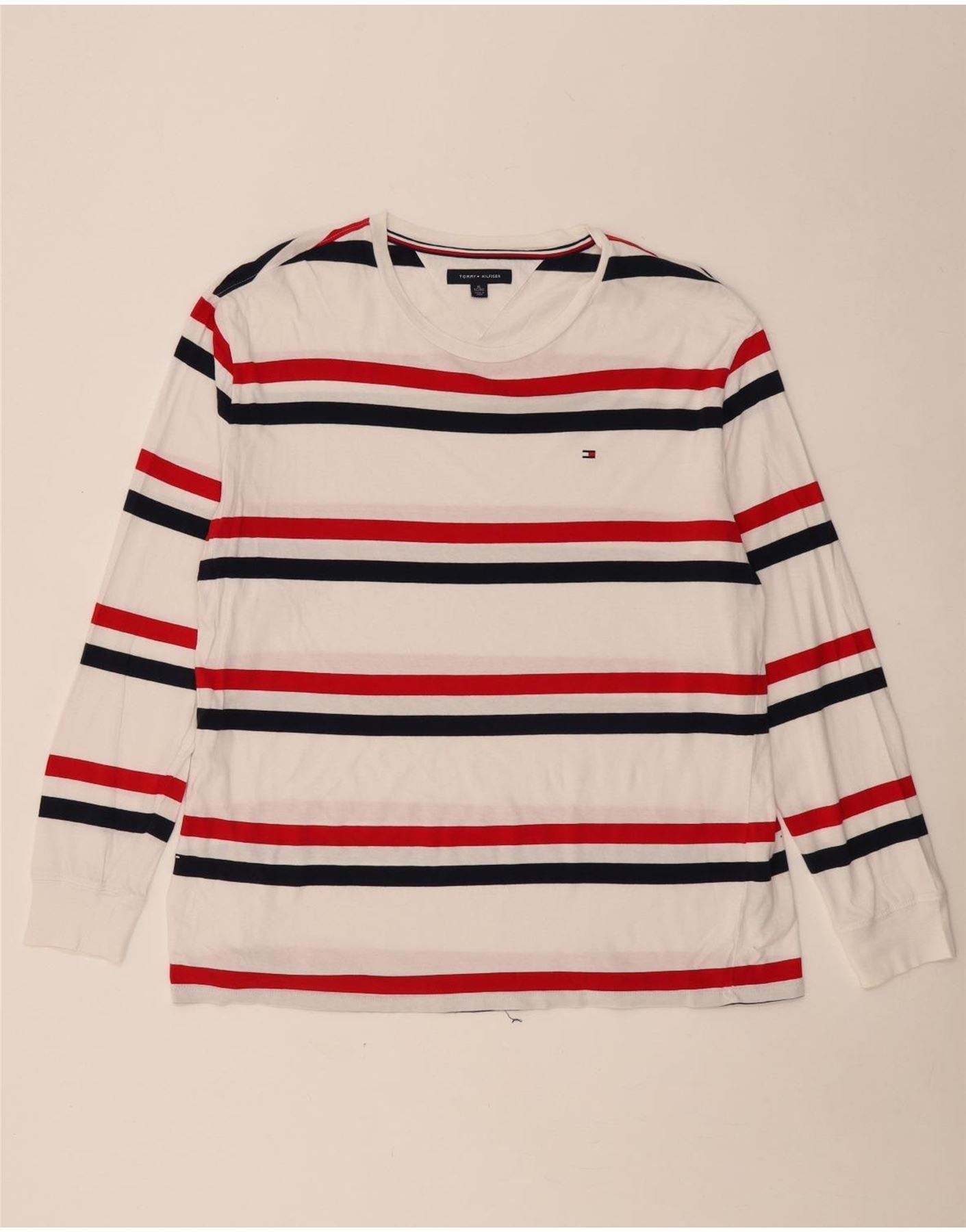TOMMY HILFIGER Haut Homme Manches Longues XL Blanc Rayé Coton