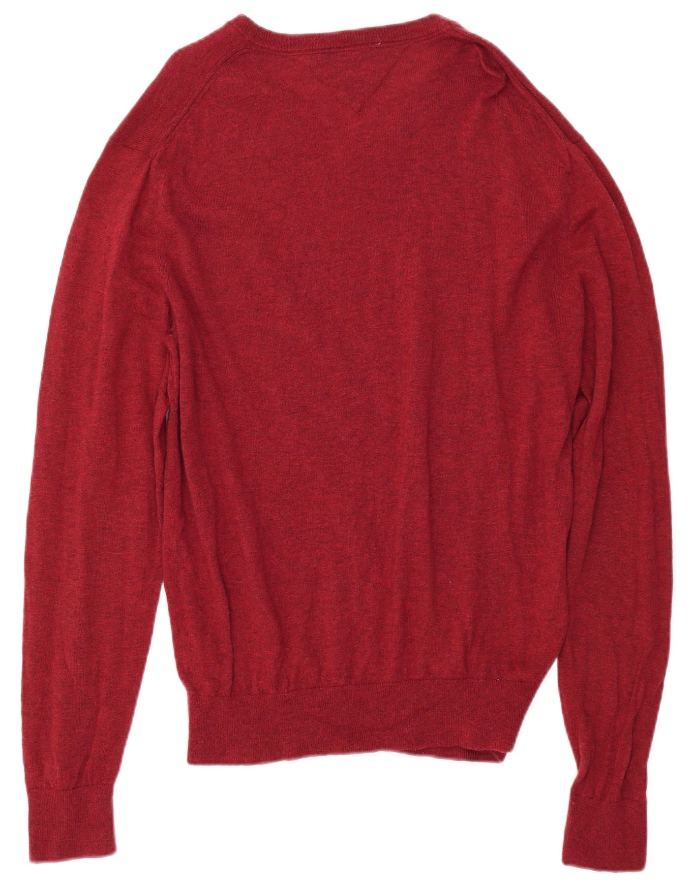 TOMMY HILFIGER Pull col V pour homme 2XL Rouge Laine