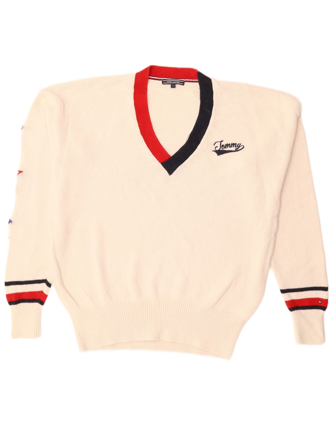 Tommy Hilfiger Pull Col V Homme Blanc Cassé Moyen Coton