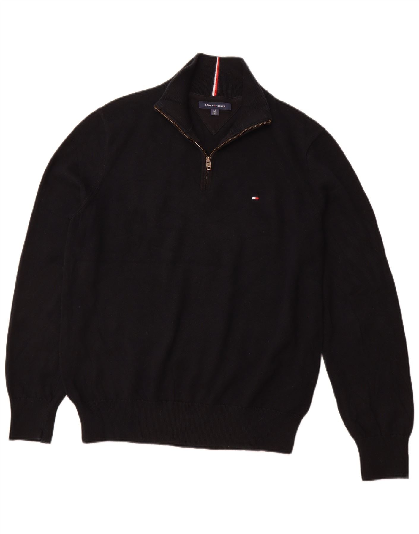 TOMMY HILFIGER Pull à col zippé pour homme Grand coton noir