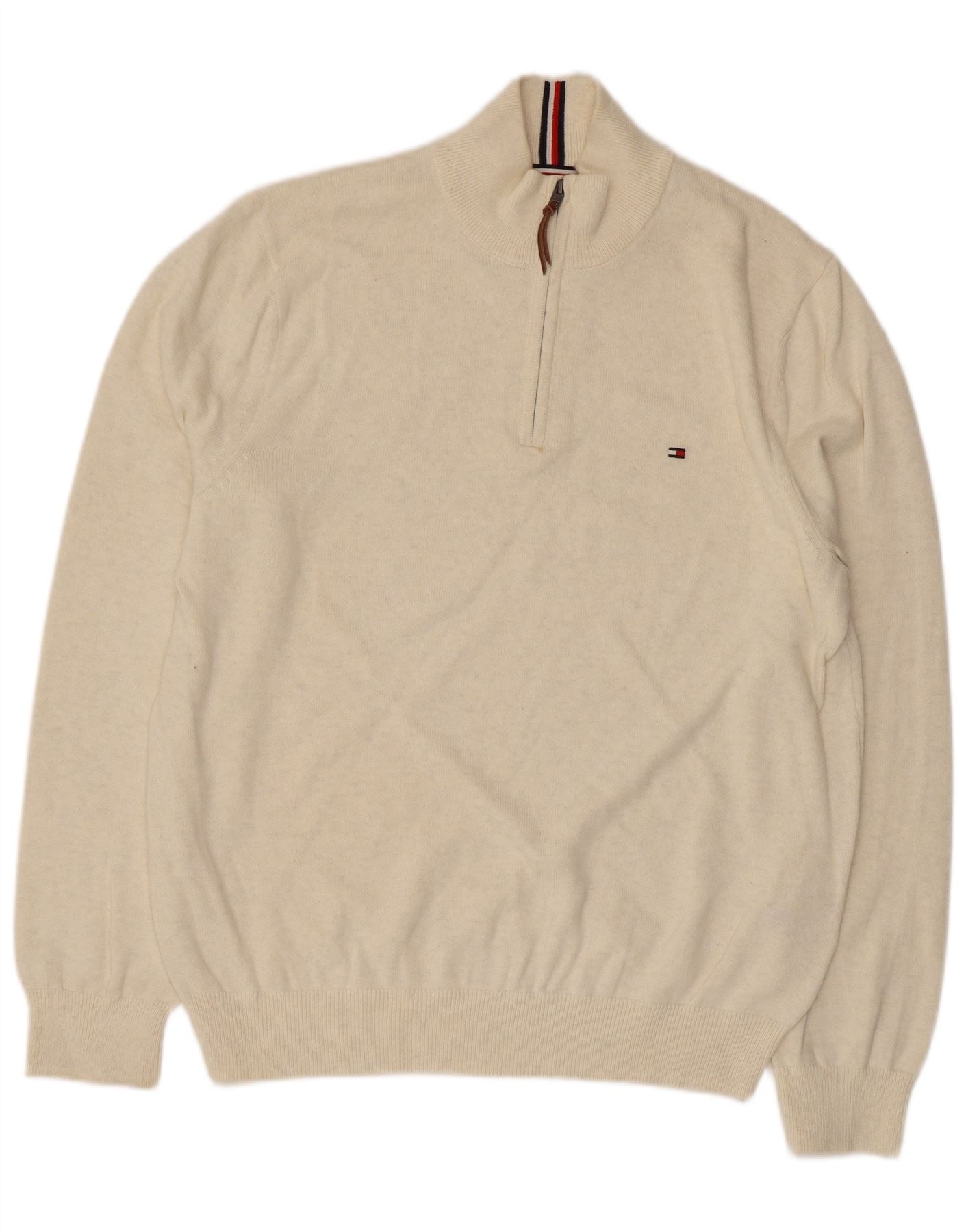 Home > Tommy Hilfiger > Pour des hommes > Pulls > TOMMY HILFIGER Pull à col zippé pour homme Large en coton blanc cassé