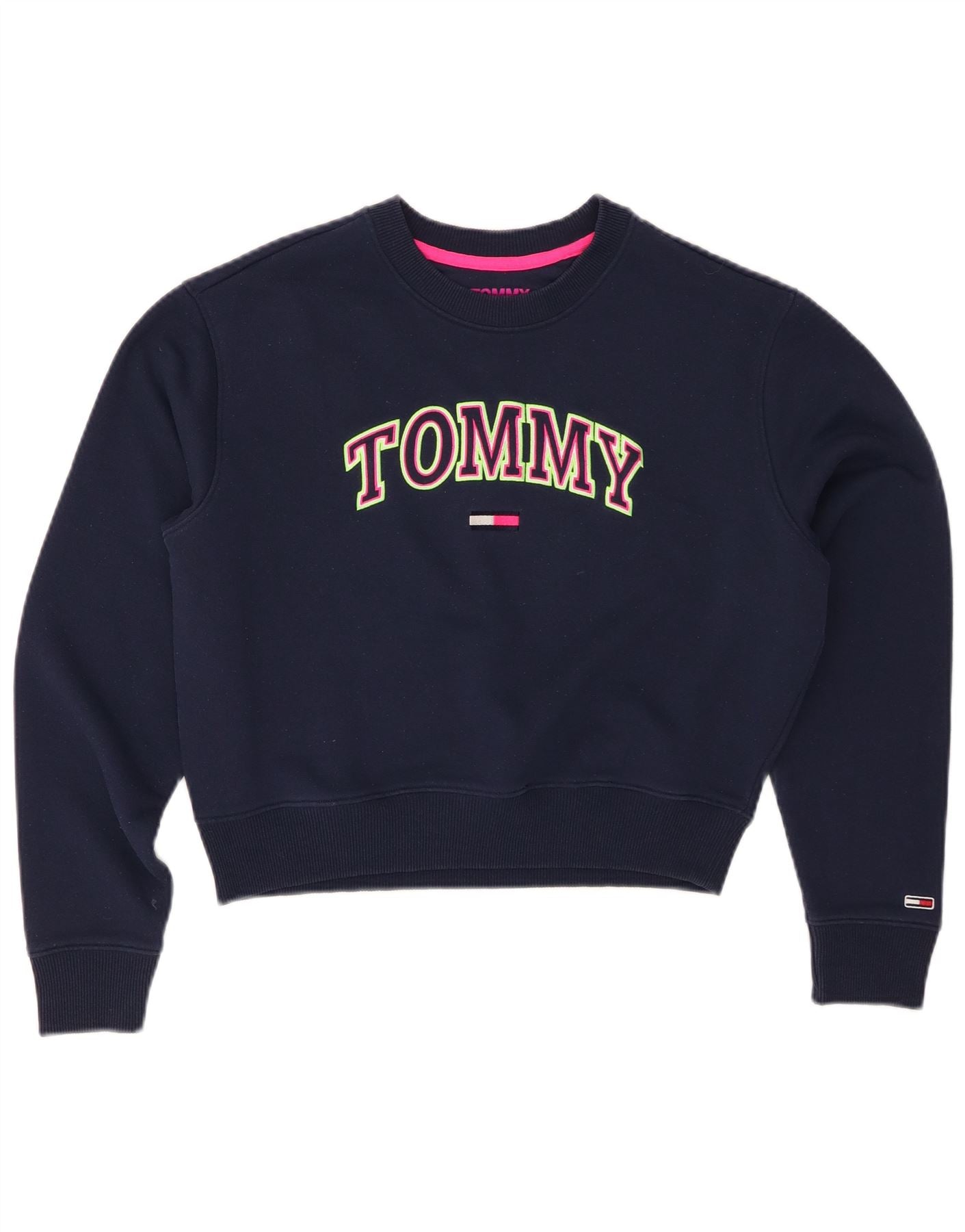 TOMMY HILFIGER Sweat-shirt court pour femme UK 10 Small Bleu marine
