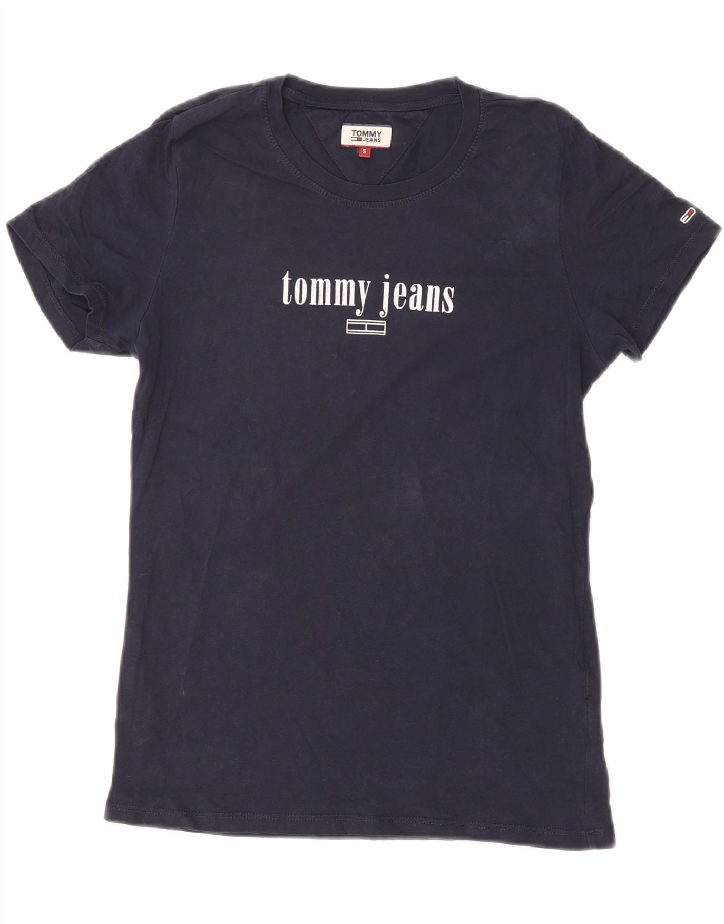 TOMMY HILFIGER Womens Graphic T-Shirt Top UK 10 Small Navy Blue Cotton