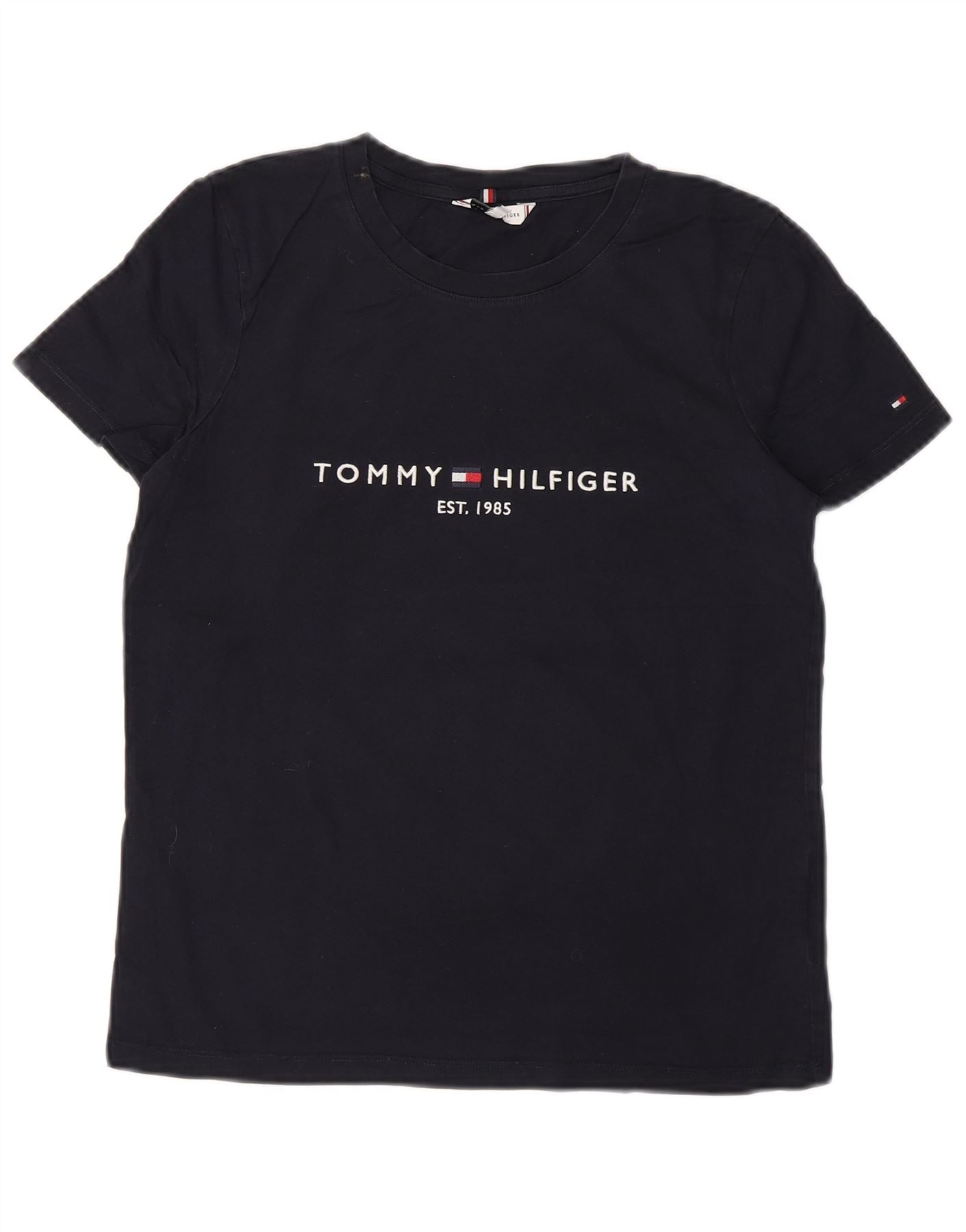 TOMMY HILFIGER T-shirt graphique pour femme UK 12 Bleu marine moyen Coton