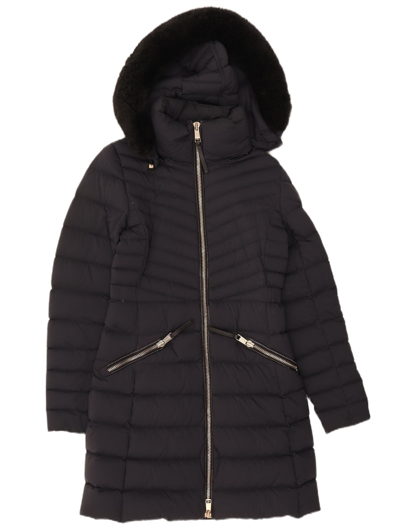 TOMMY HILFIGER Womens Hooded Padded Coat UK 6 XS Navy Blue Polyamide