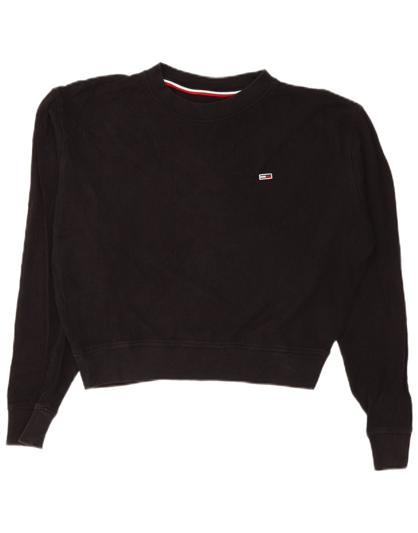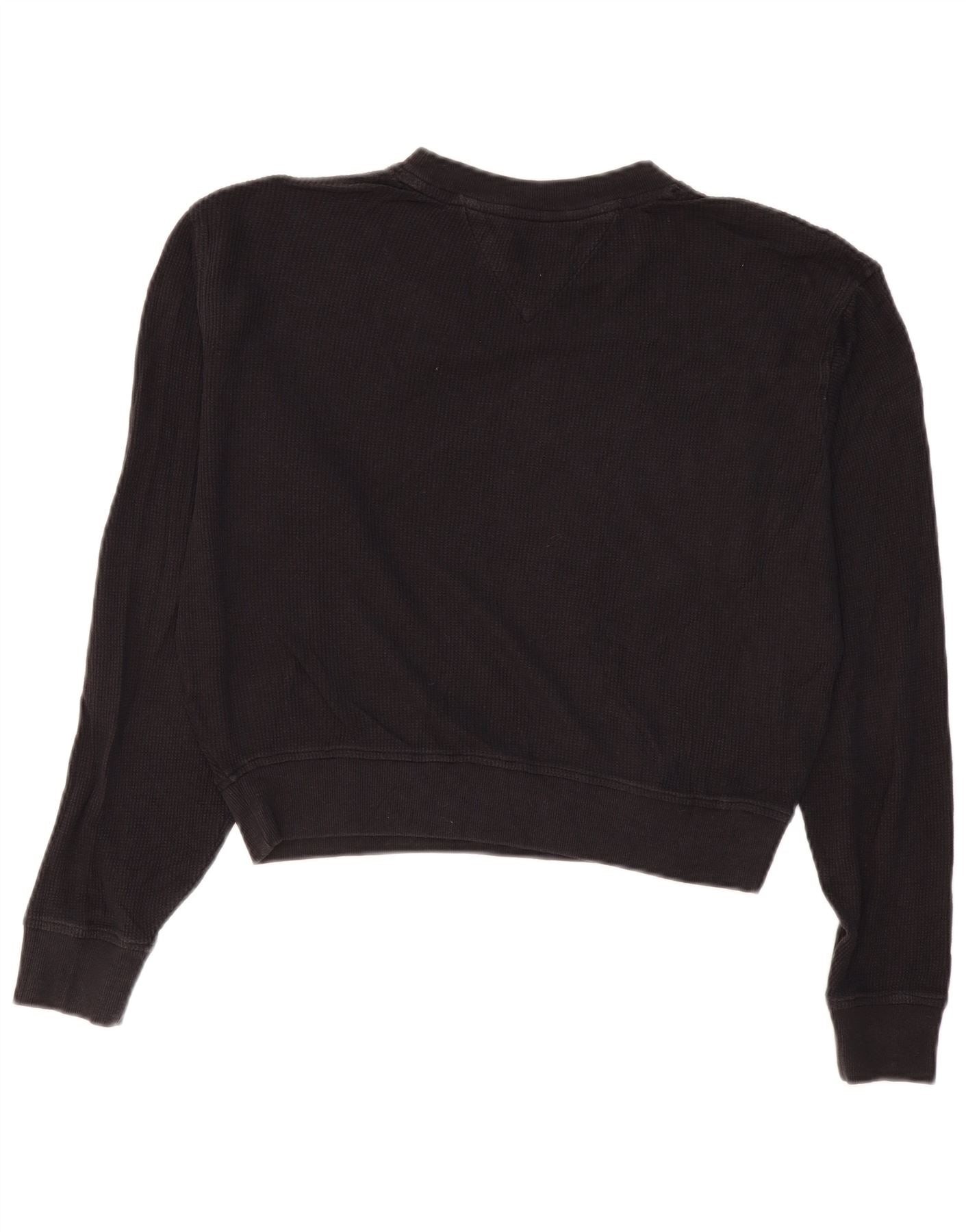 TOMMY HILFIGER Haut court surdimensionné à manches longues pour femme UK 10 Petit Noir