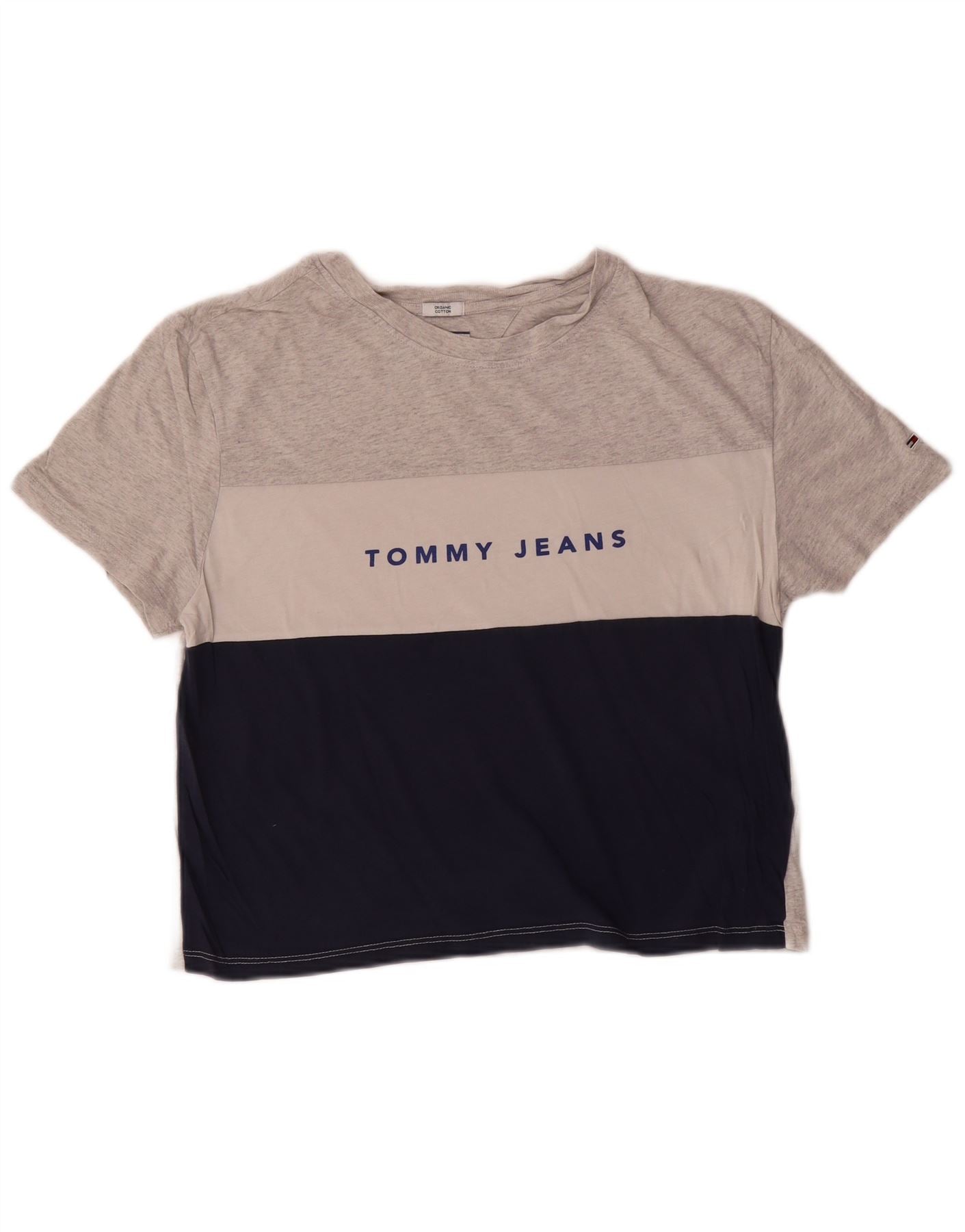 TOMMY HILFIGER T-shirt graphique surdimensionné pour femme UK 6 XS Gris