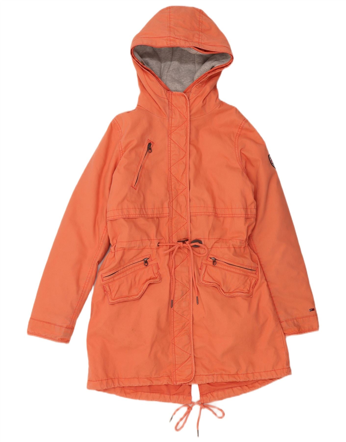 TOMMY HILFIGER Veste parka à capuche surdimensionnée pour femme UK 10 Small Orange