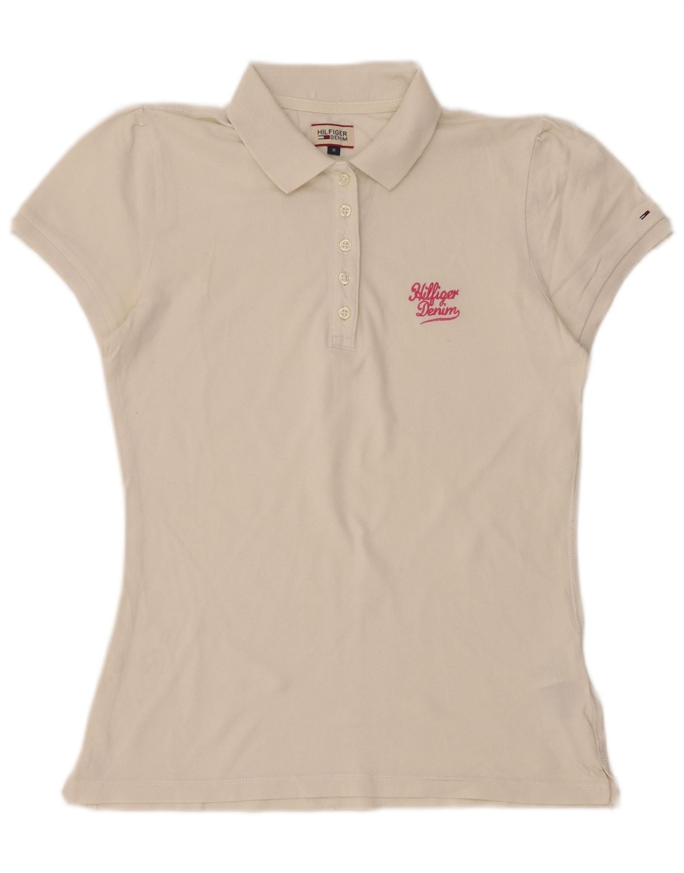 TOMMY HILFIGER Polo Femme UK 12 Coton Blanc Moyen