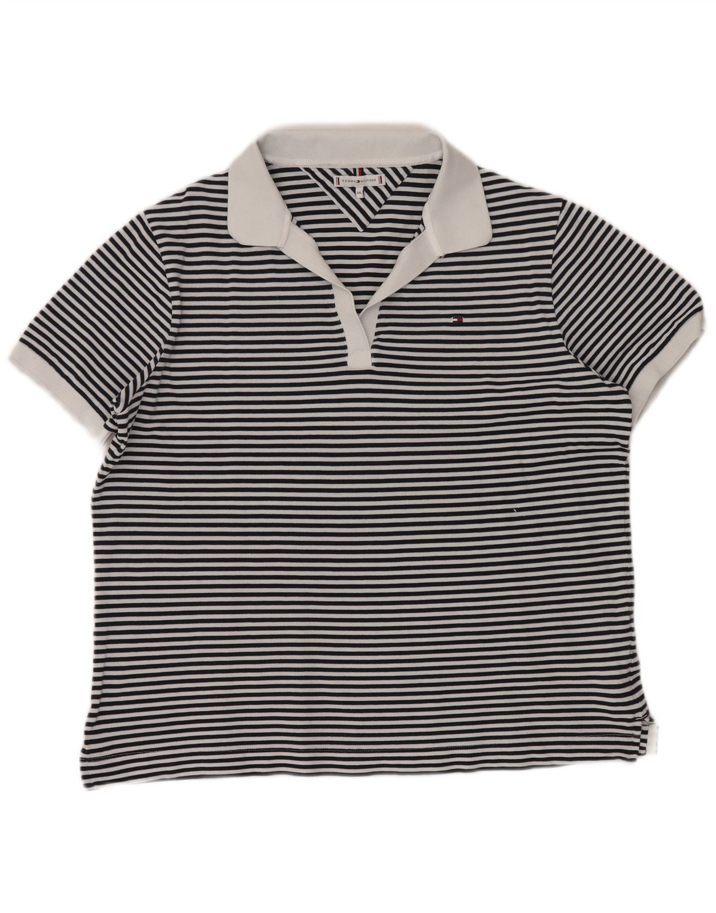 TOMMY HILFIGER Polo Femme UK 20 2XL Bleu Marine Rayé Nautique