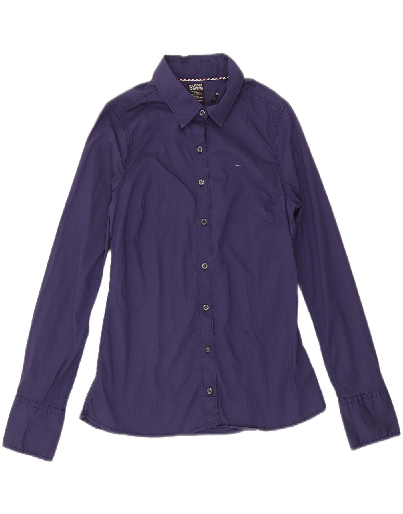 TOMMY HILFIGER Chemise Femme UK 14 Large Bleu Marine Coton