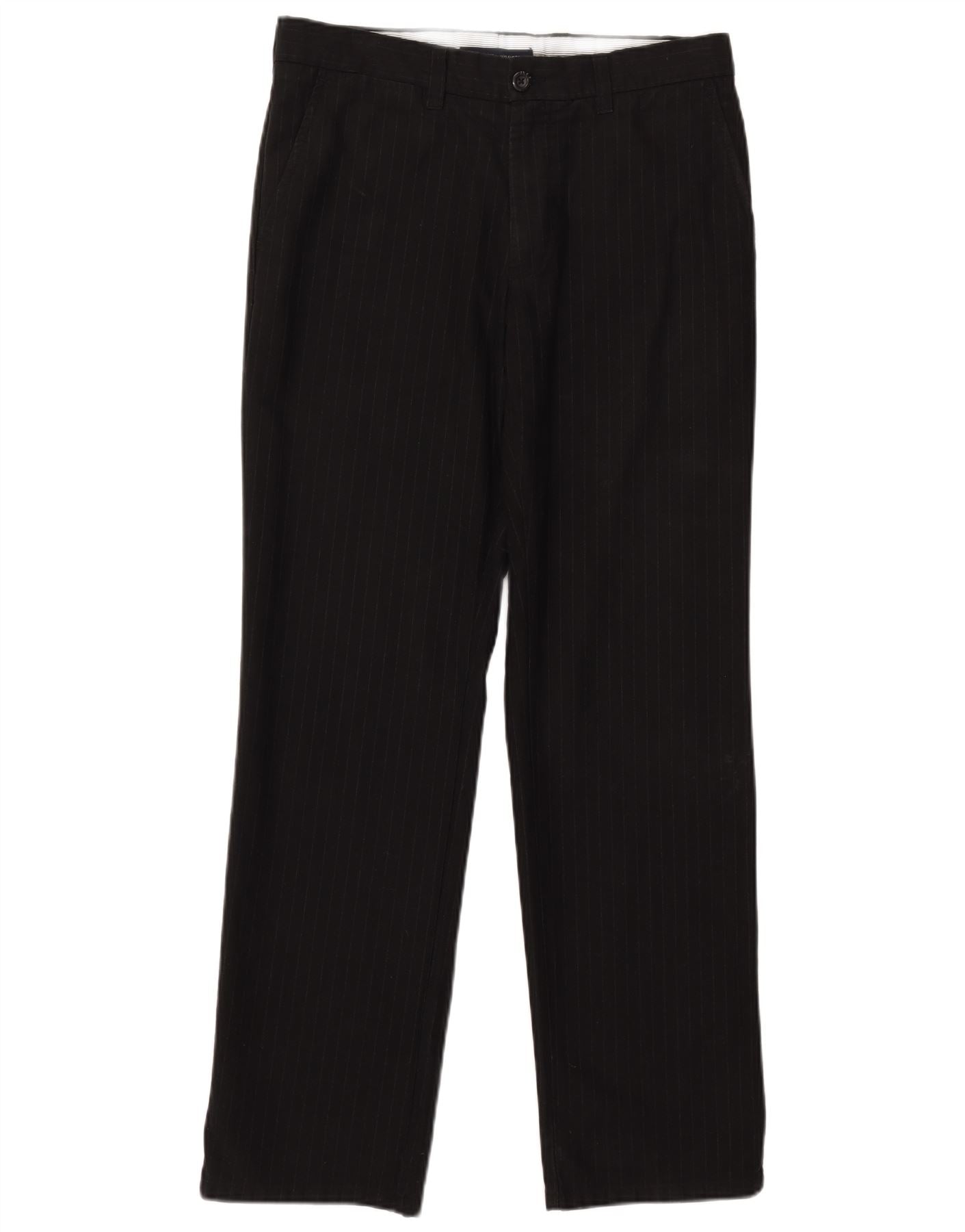 TOMMY HILFIGER Pantalon de Costume Droit Femme W32 L32 Coton Rayé Noir