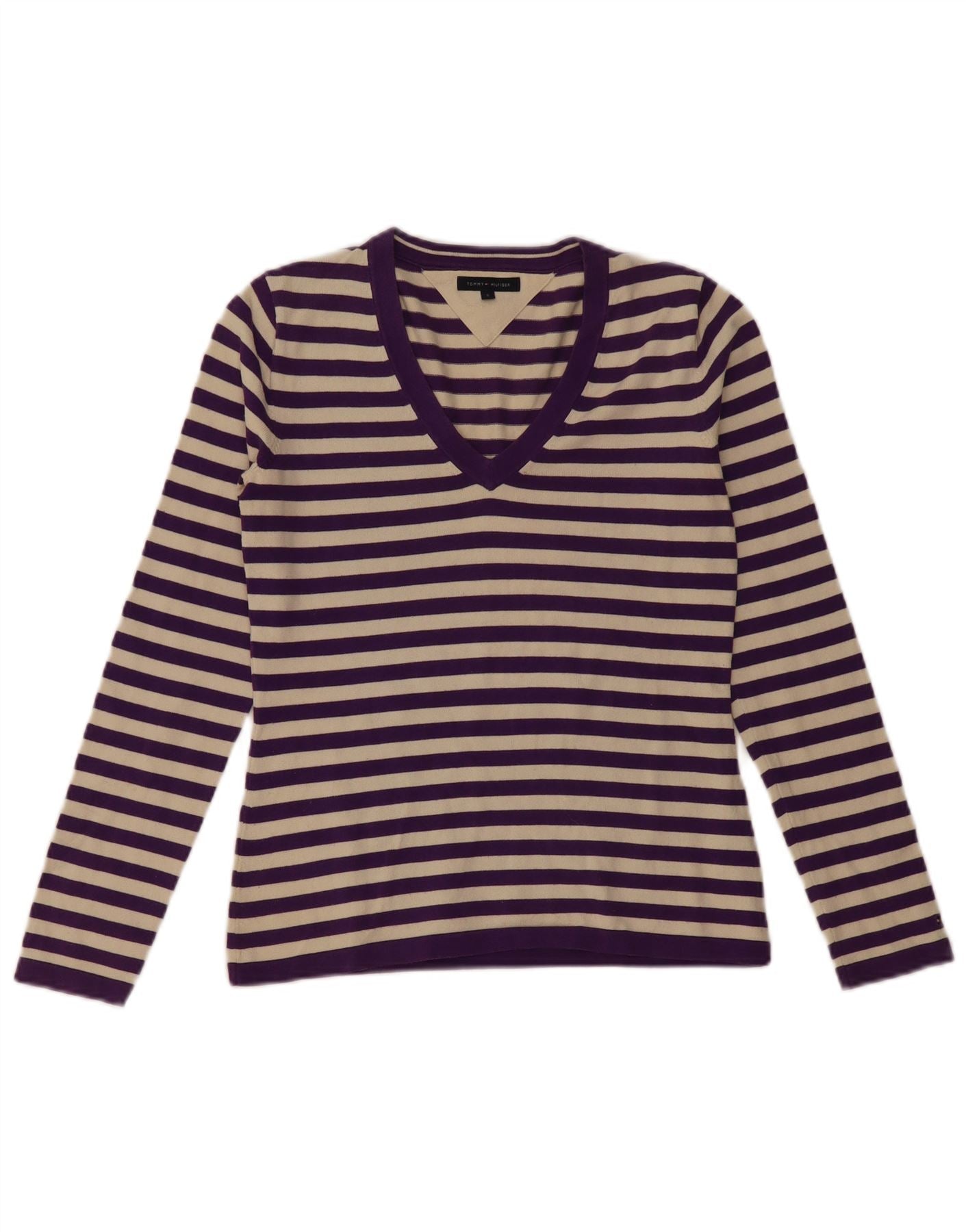 TOMMY HILFIGER Pull col en V pour femme UK 10 Petit violet rayé