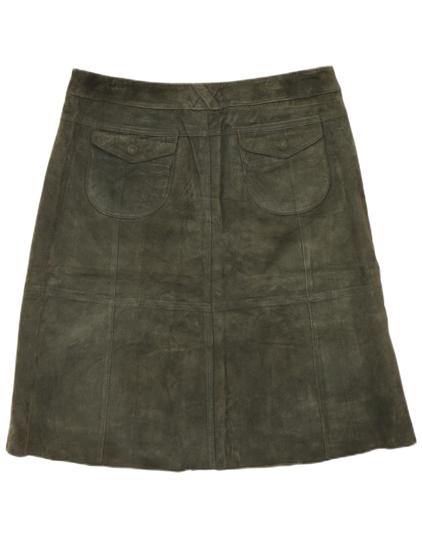 TOPSHOP Jupe en daim pour femme UK 12 Medium W32 Cuir kaki