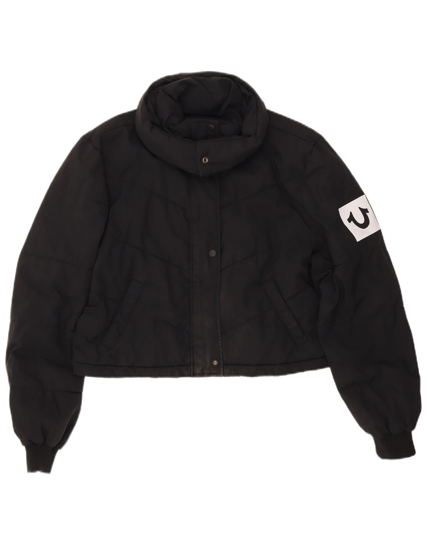 TRUE RELIGION Veste courte rembourrée pour femme UK 16 Large Noir Polyester