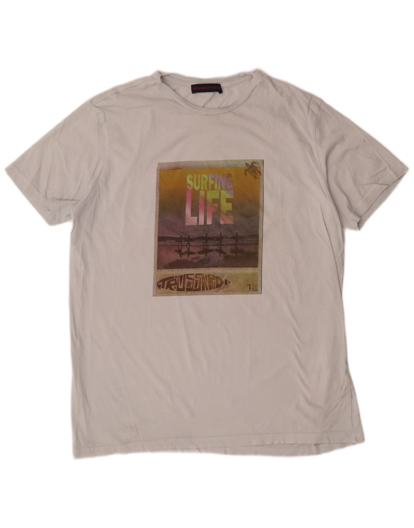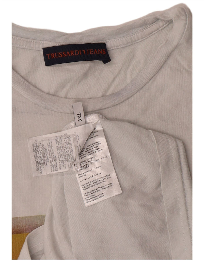 TRUSSARDI JEANS T-Shirt Graphique Homme Top 3XL Blanc Coton