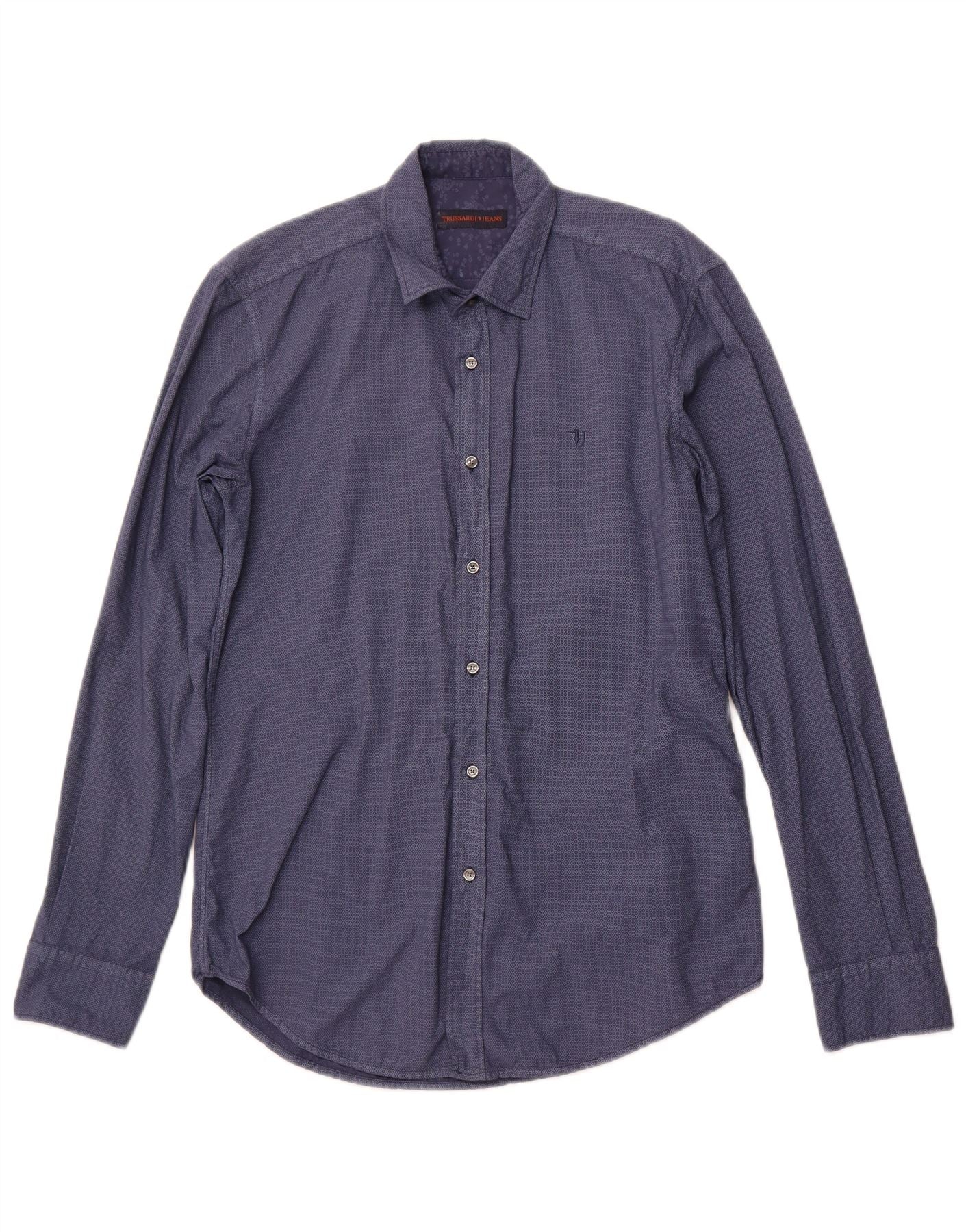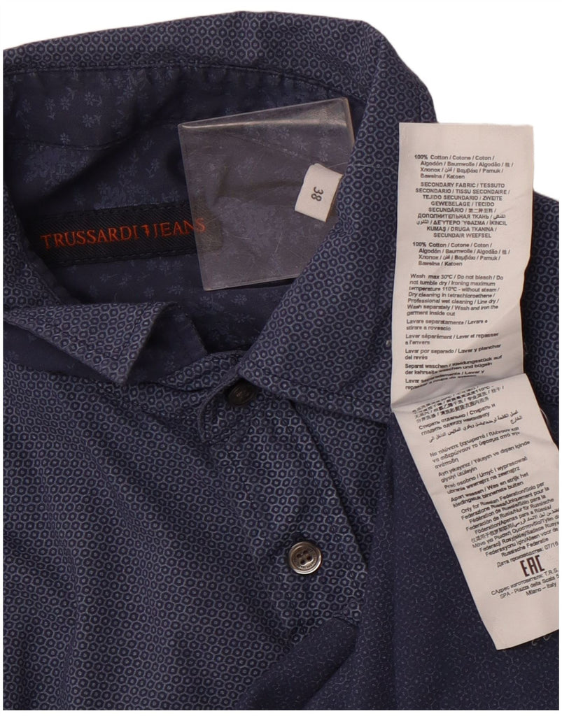 TRUSSARDI JEANS Chemise homme taille 38 bleu marine moyen coton géométrique