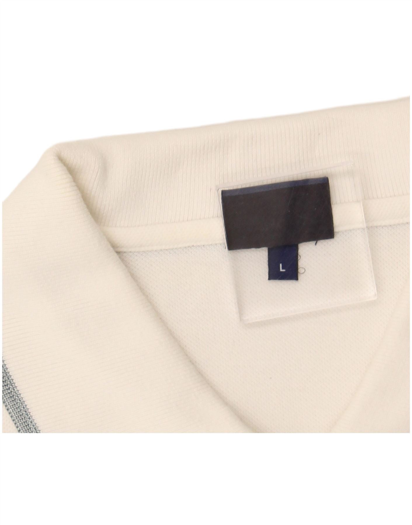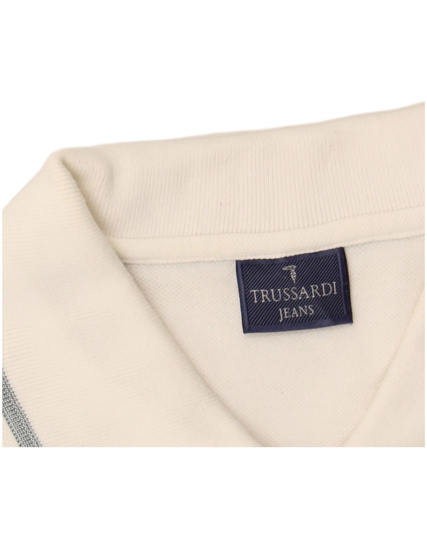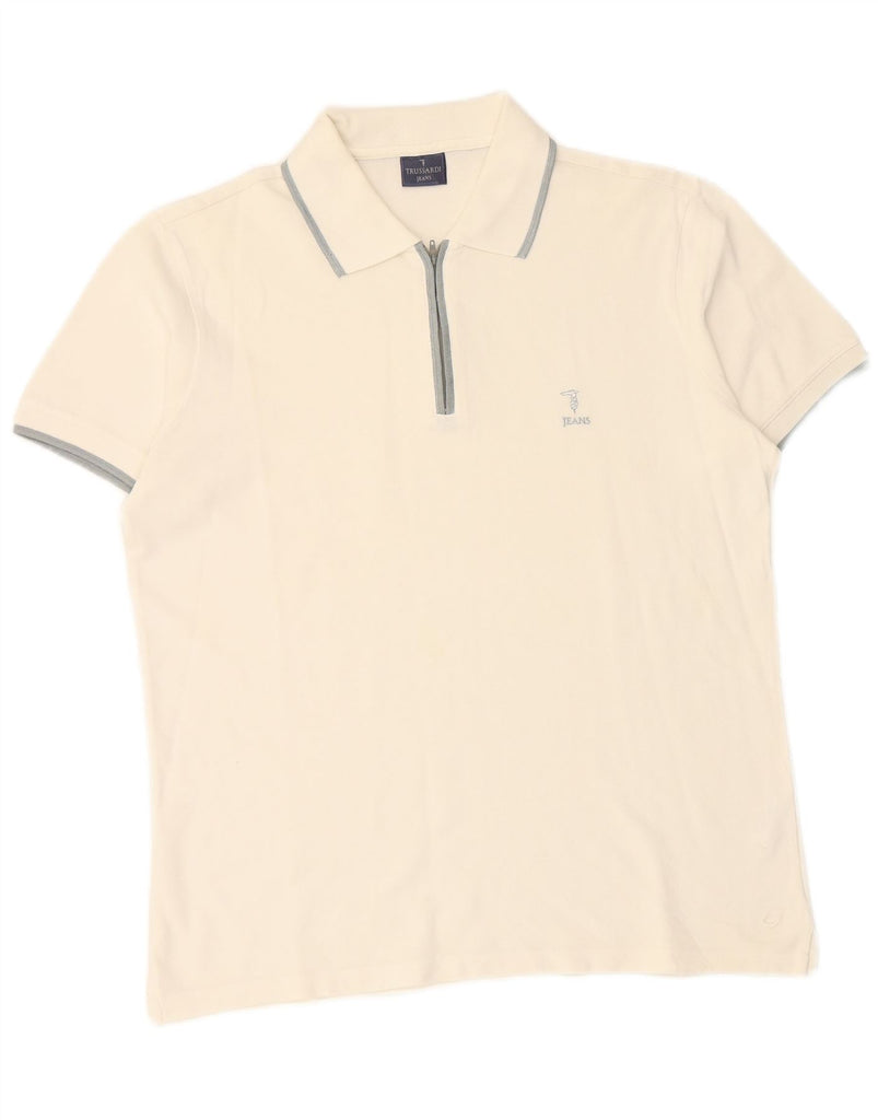 TRUSSARDI JEANS Mens Zip Neck Polo Shirt Large White Cotton