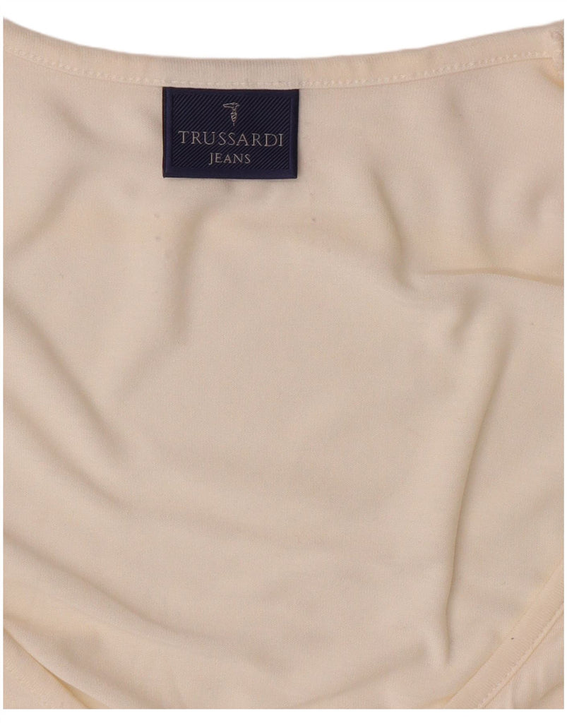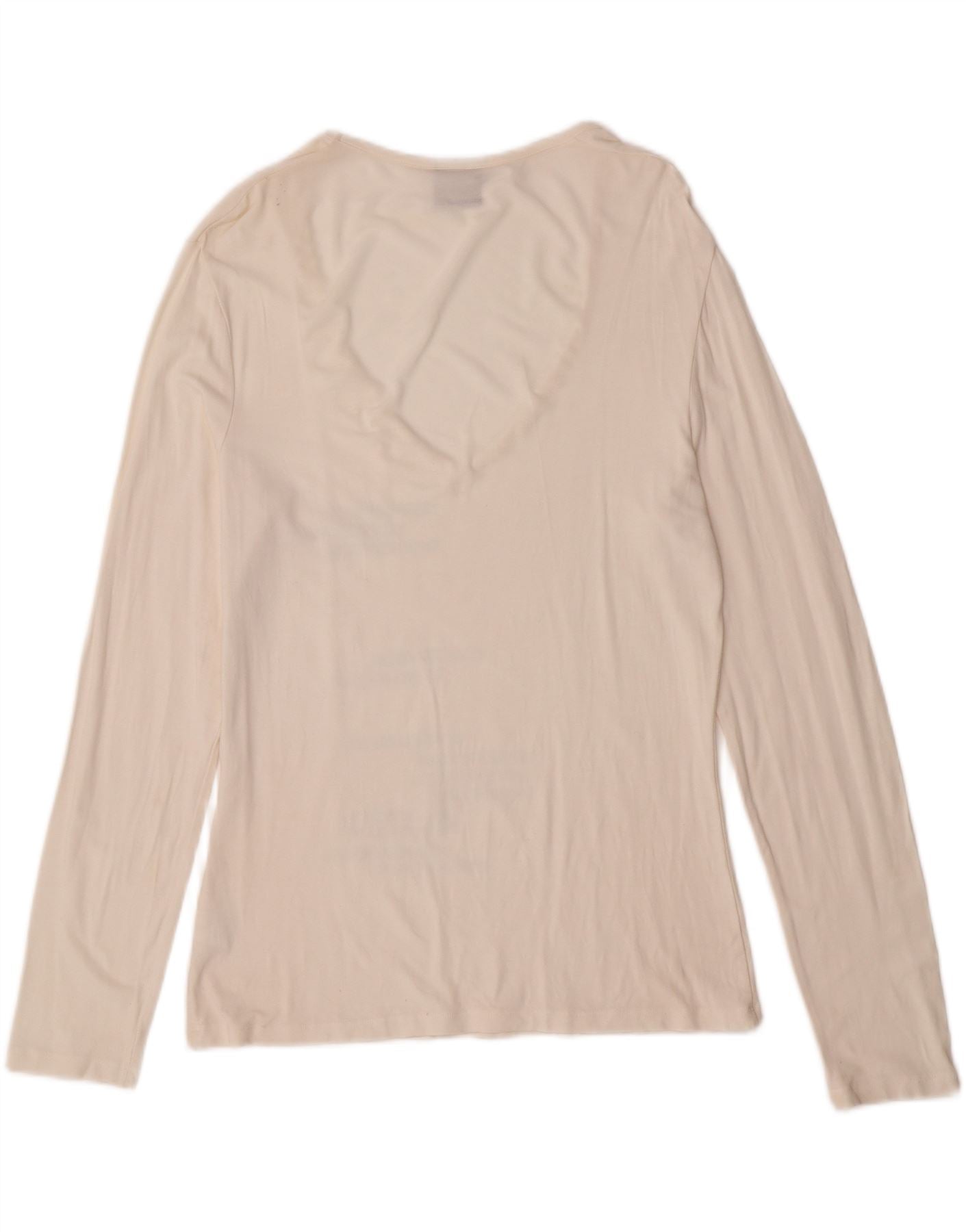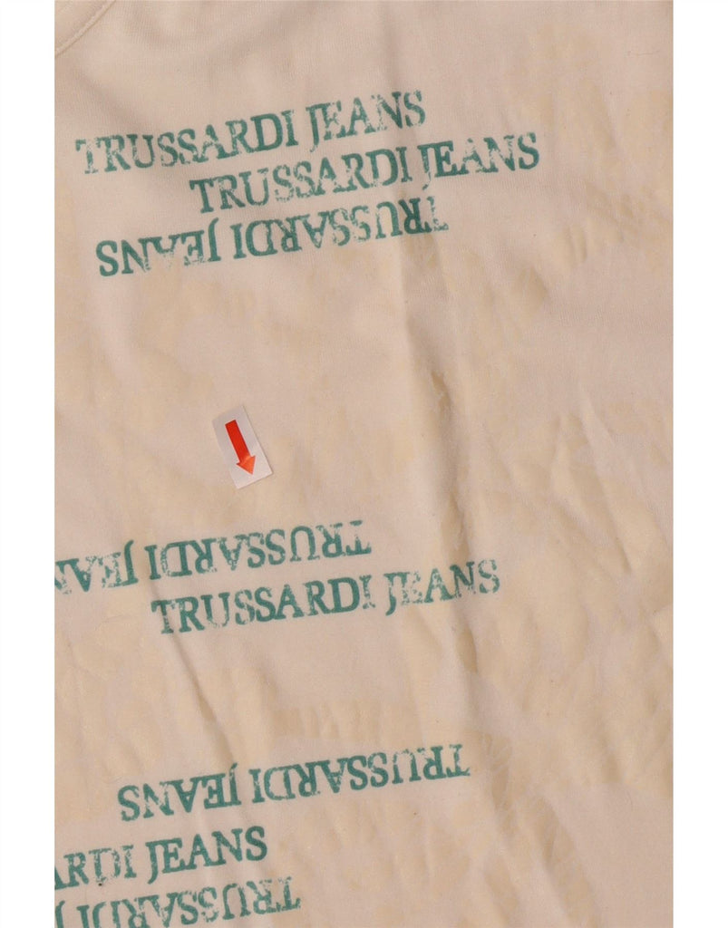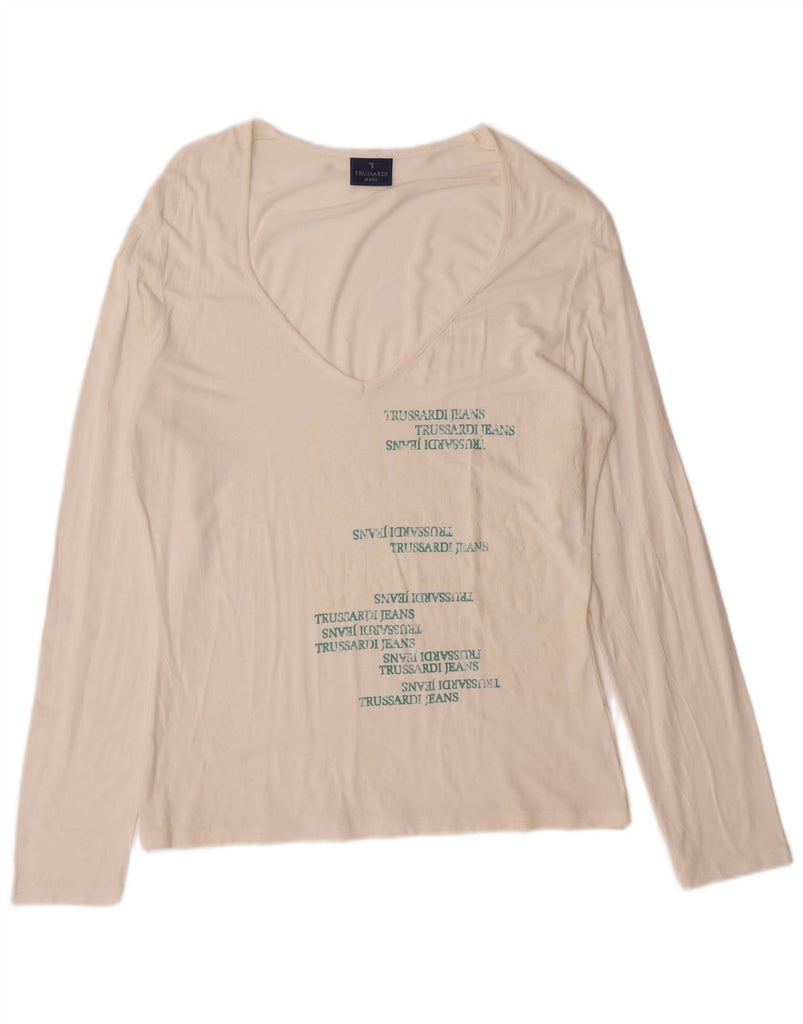 TRUSSARDI JEANS Haut graphique à manches longues pour femme UK 16 Large Blanc cassé