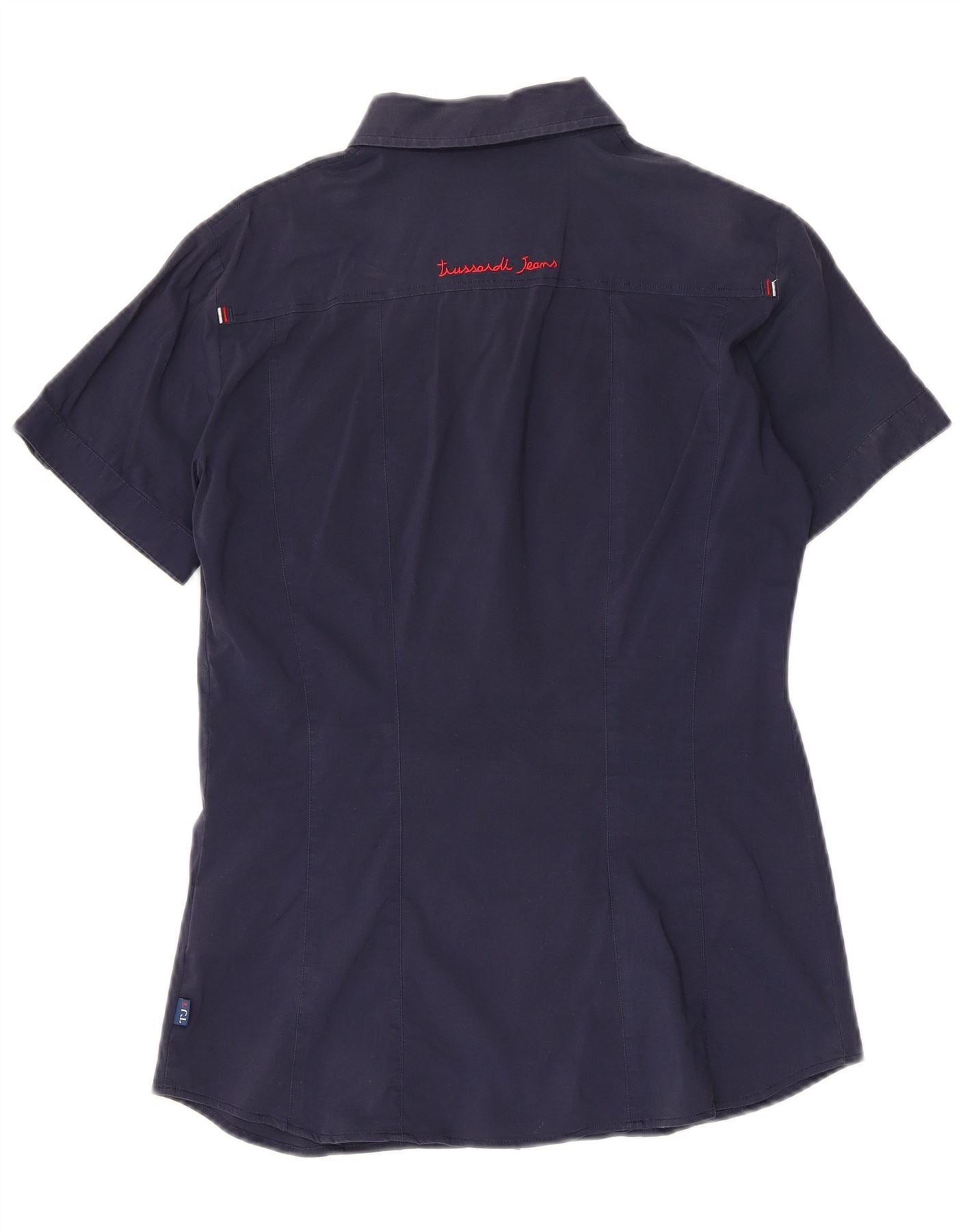 TRUSSARDI JEANS Chemise à manches courtes pour femme UK 12 Bleu marine moyen Coton