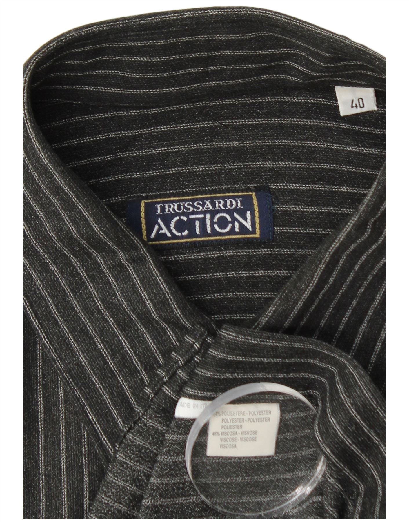 Trussardi Chemise Homme Taille 40 Moyen Noir Fines Rayures Polyester