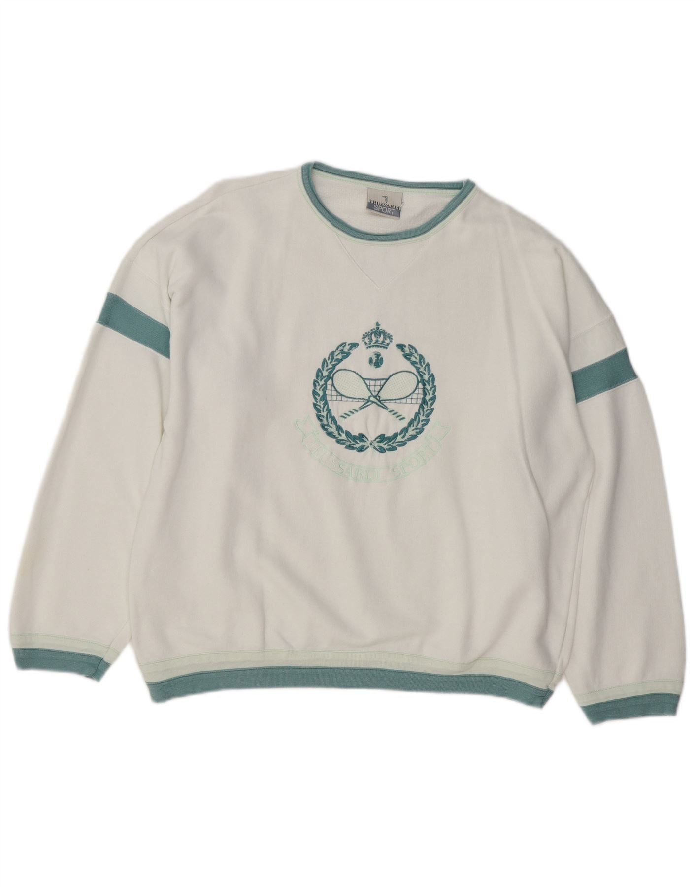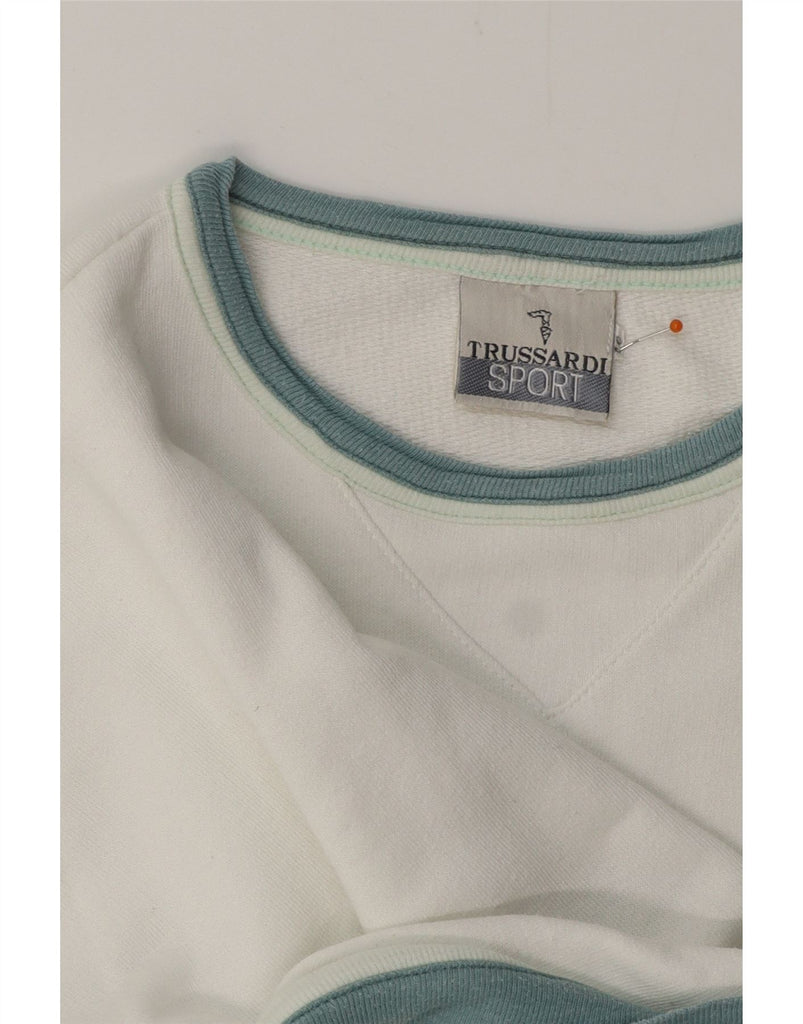 TRUSSARDI Femme Graphic Sweatshirt Jumper IT 46 Large Blanc Coton