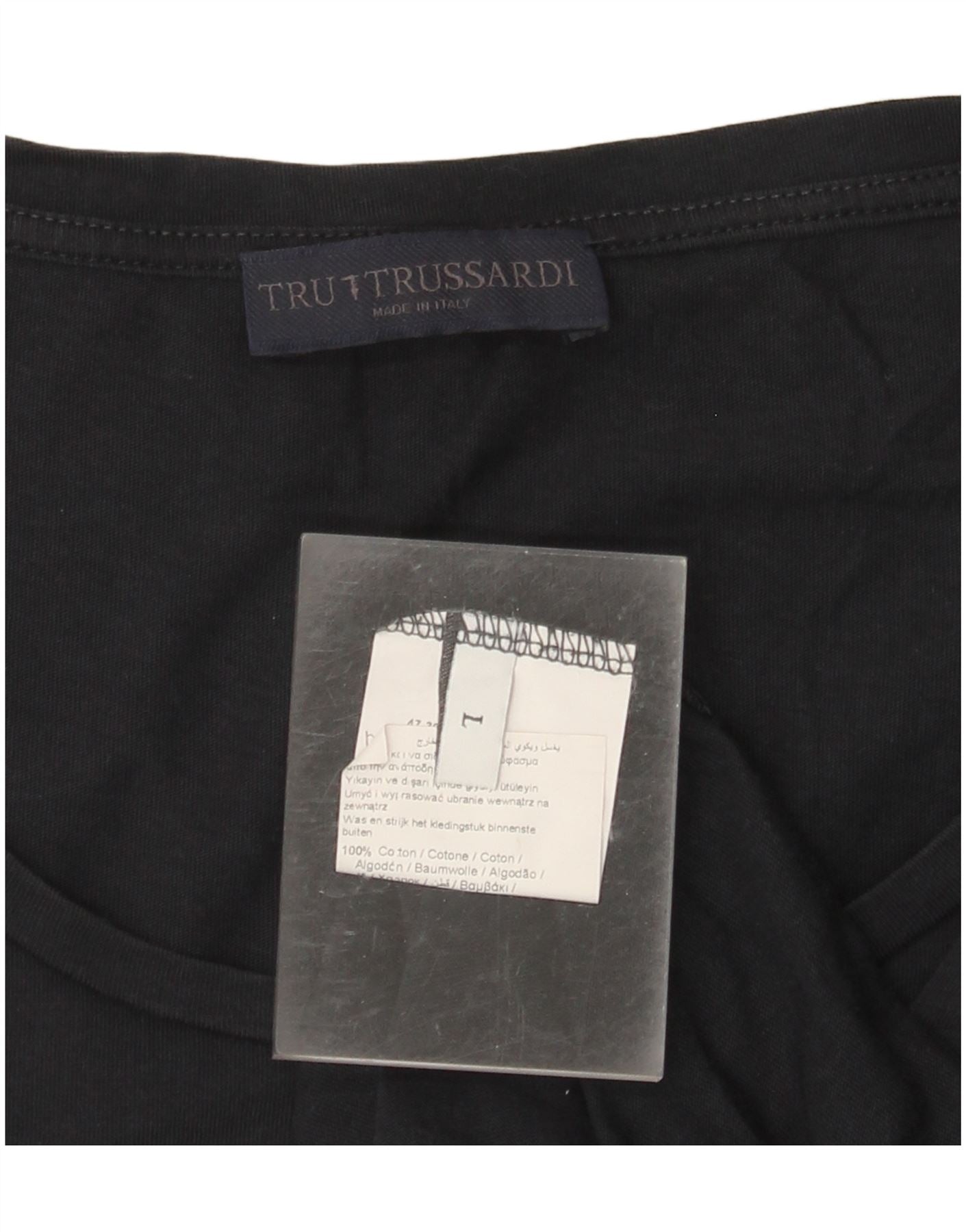 TRUSSARDI T-Shirt Graphique Femme UK 16 Large Noir Coton