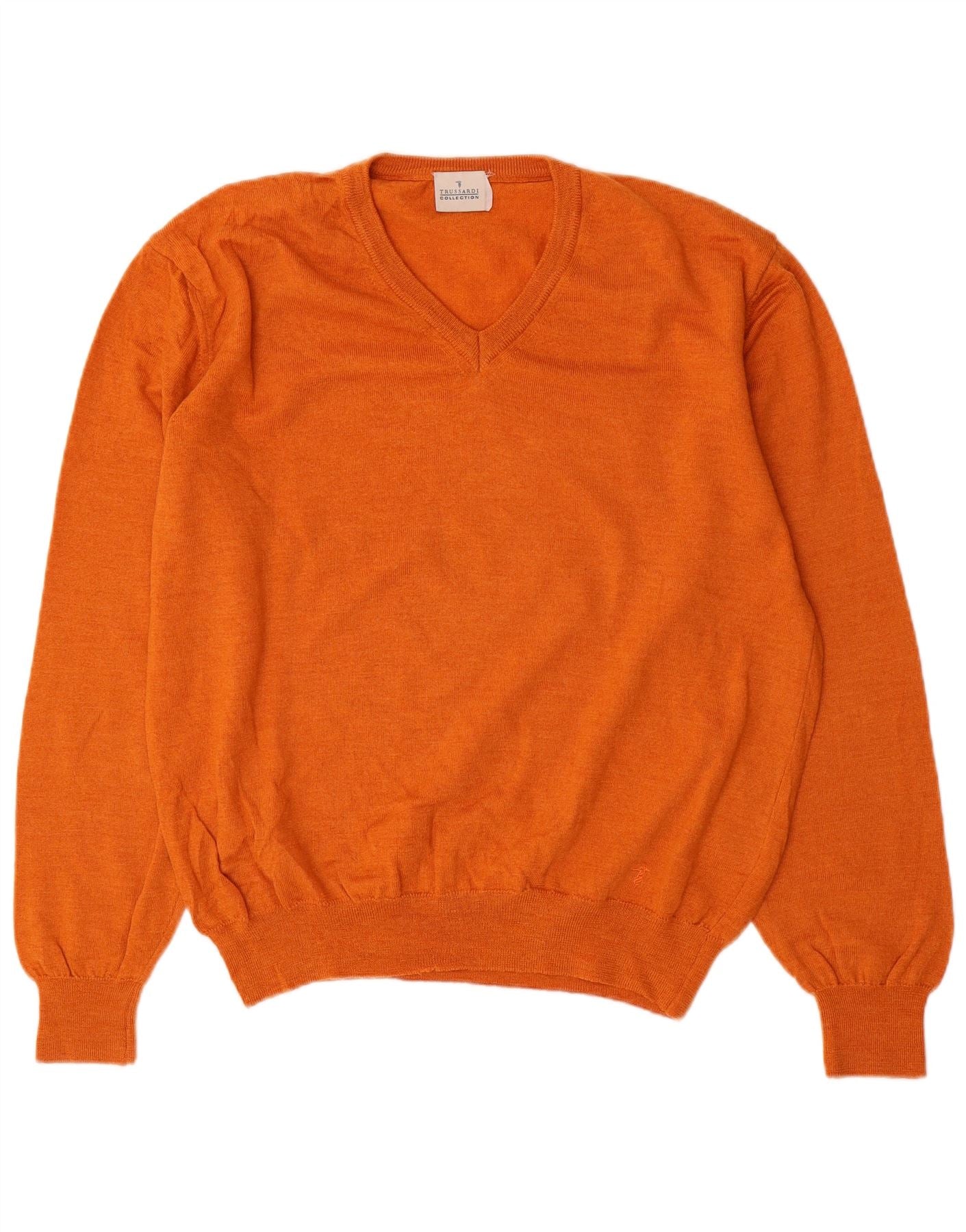 TRUSSARDI Pull col V pour femme UK 20 2XL Orange Laine