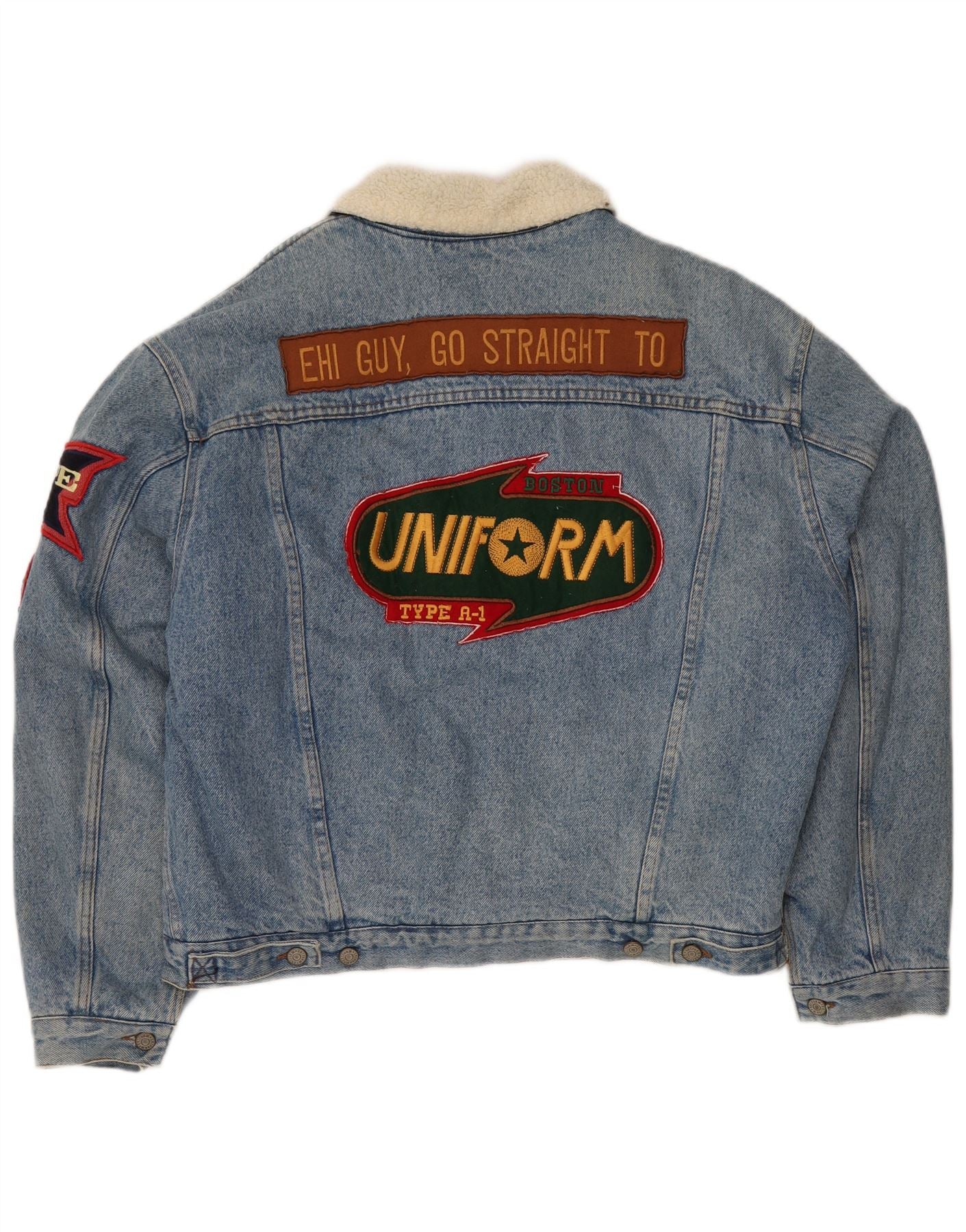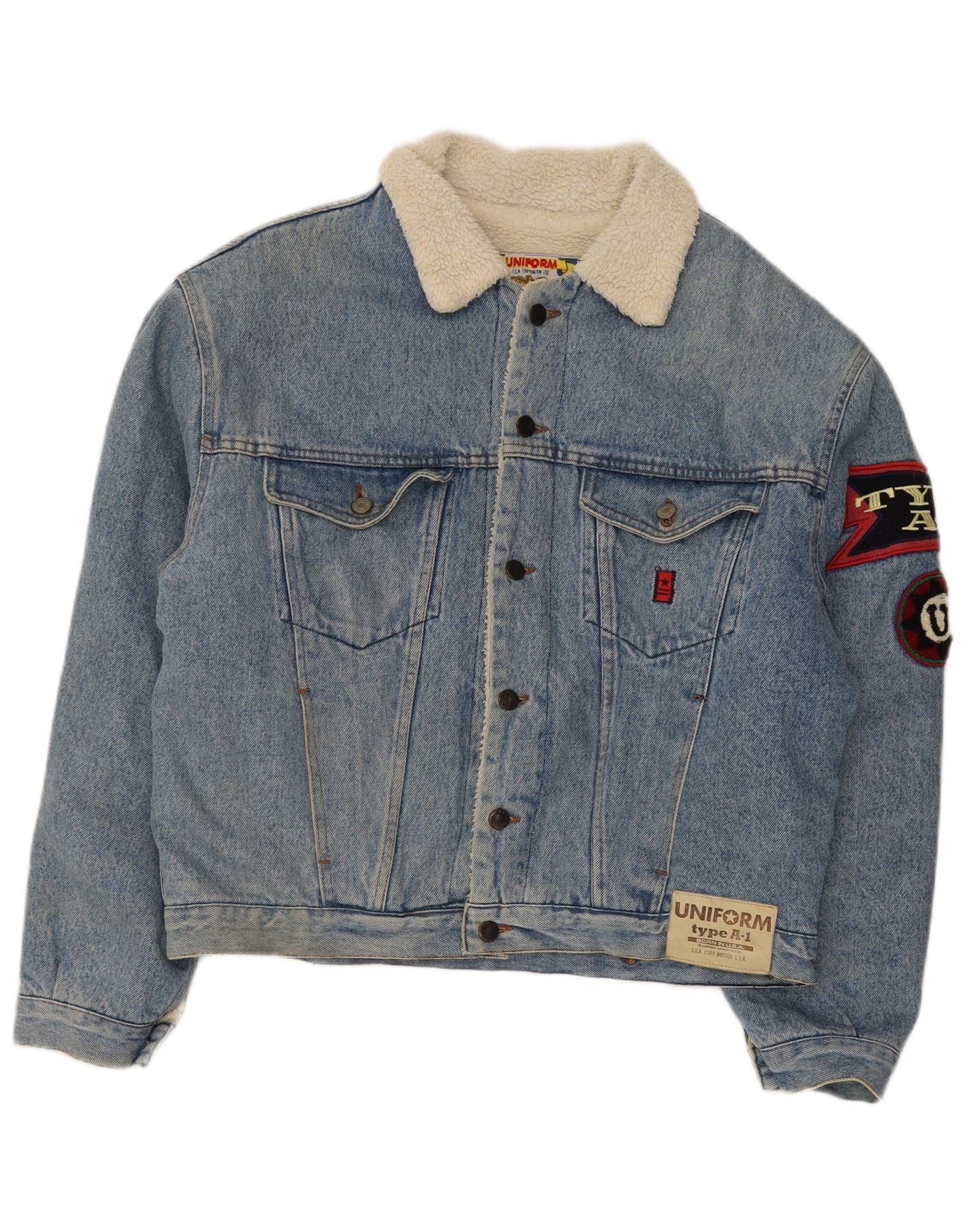 UNIFORM Veste Sherpa en jean graphique Type A-1 pour homme UK 40 Large Bleu