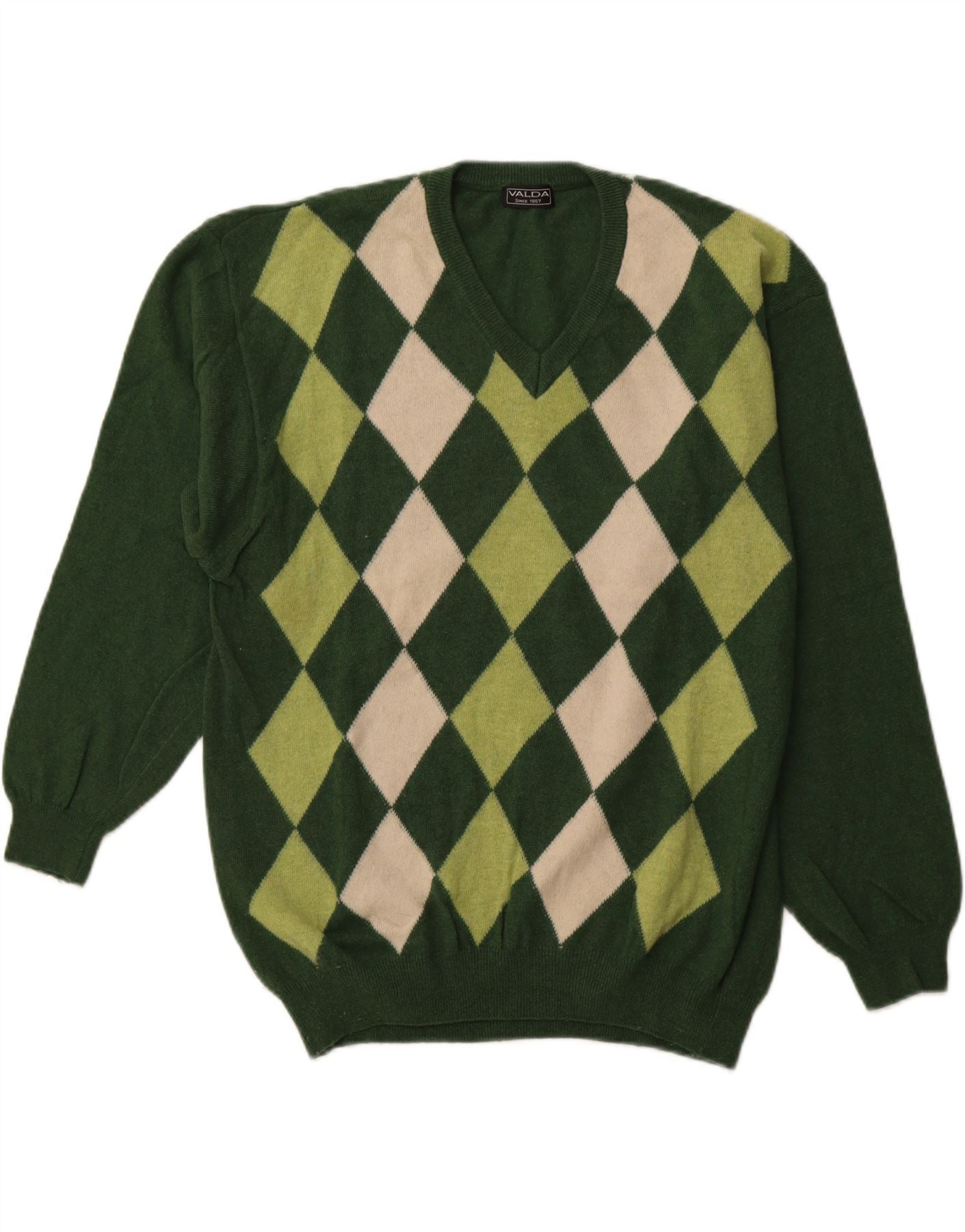 VALDA Pull col V pour homme en laine à losanges/diamants Vert