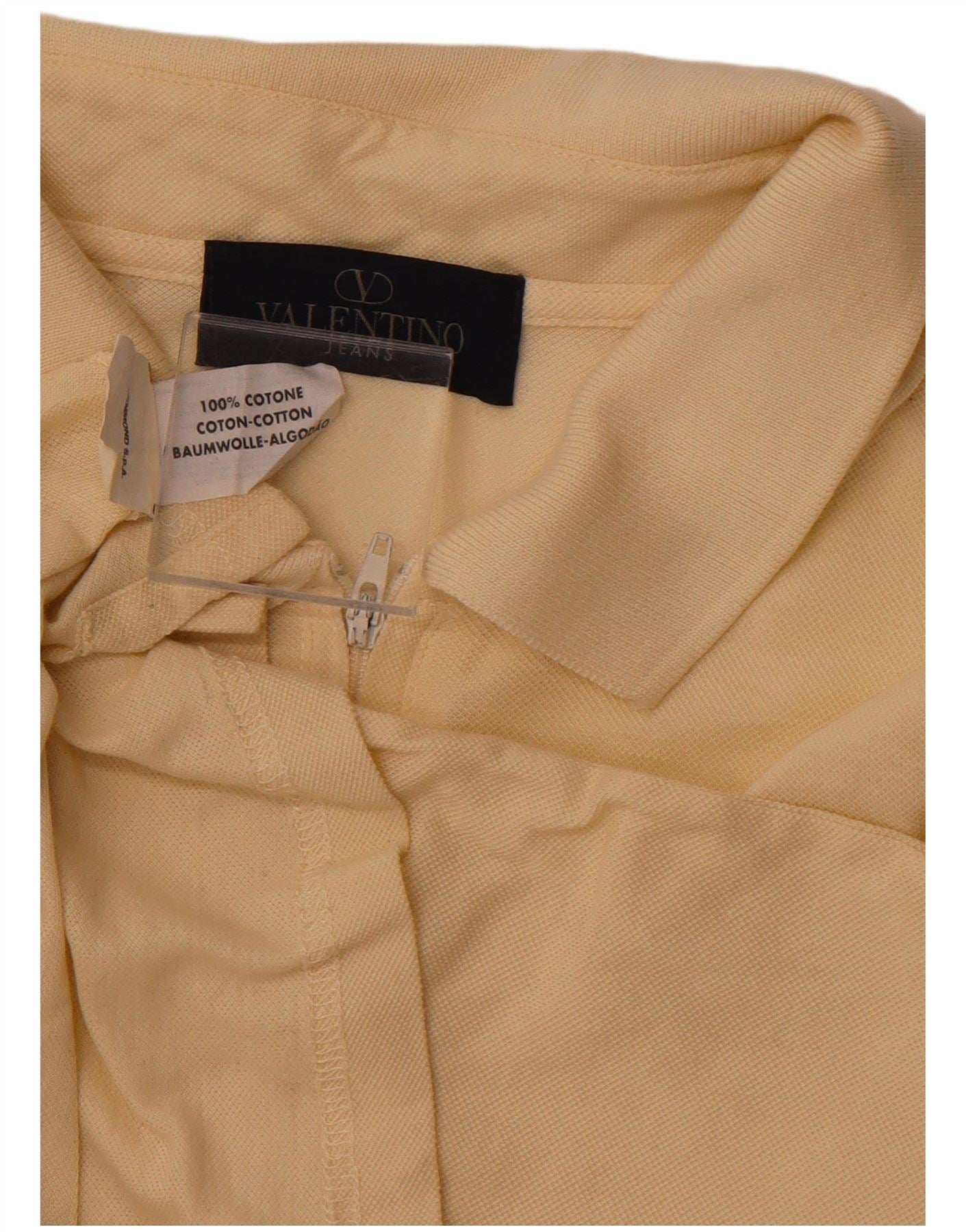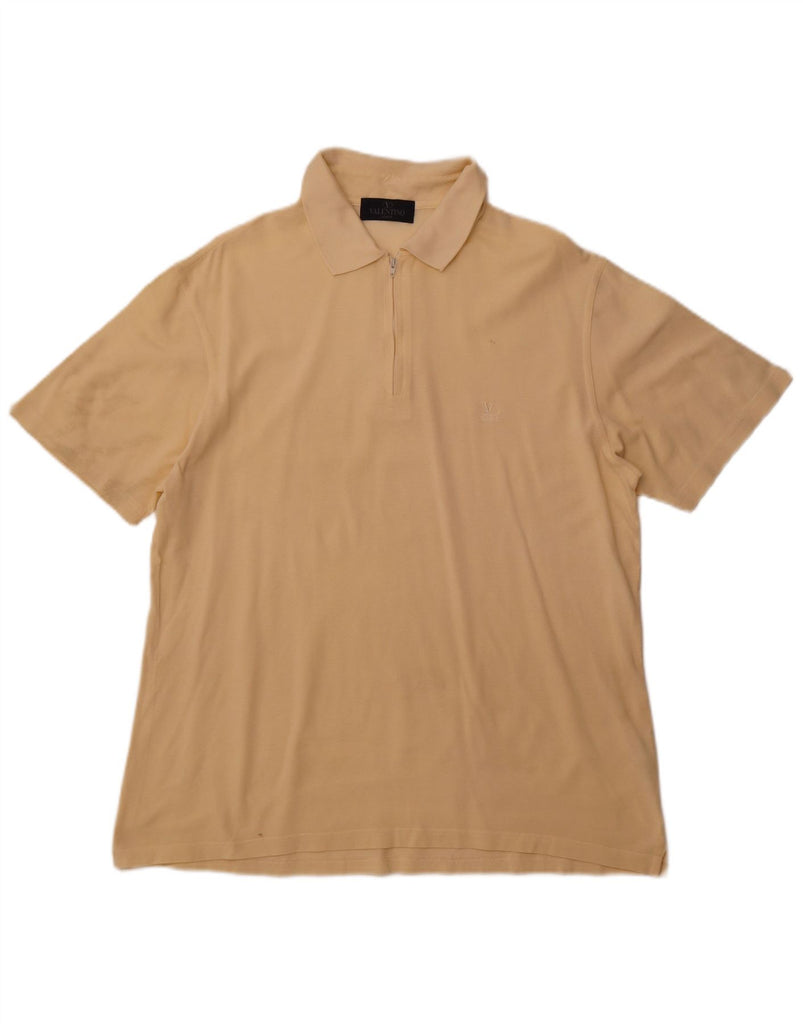 - AI Description: This Valentino Jeans mens Polo Shirt is crafted from 100 percent cotton knit fabric offering a soft comfortable feel. Presented in a versatile beige hue it features a classic collared neckline and short sleeves. A zip closure adds a modern touch while the regular fit ensures ease of wear. Subtle logo detailing completes this timeless design.