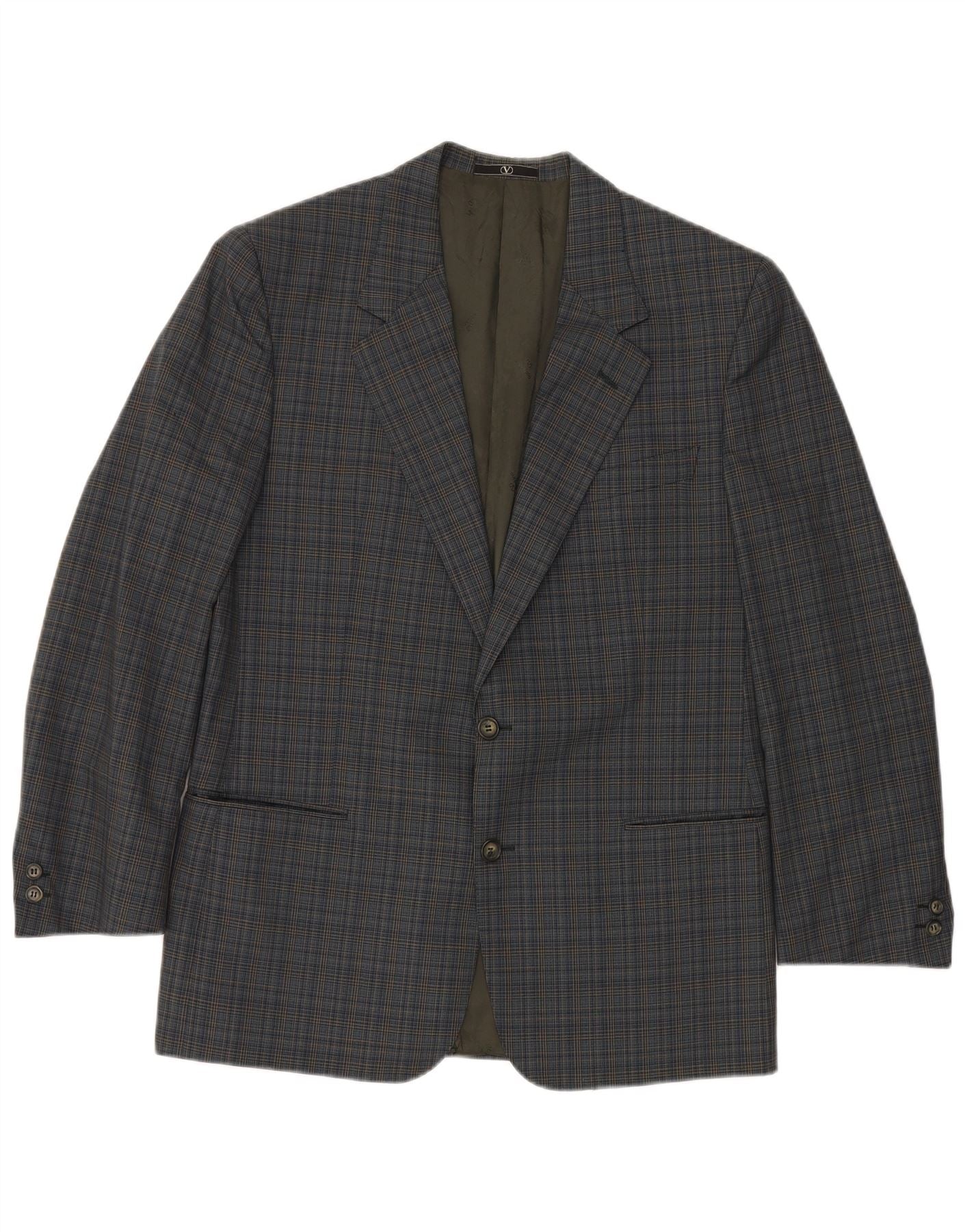 VALENTINO Veste Blazer 2 Boutons Homme IT 50 Grand Carreau Bleu Viscose