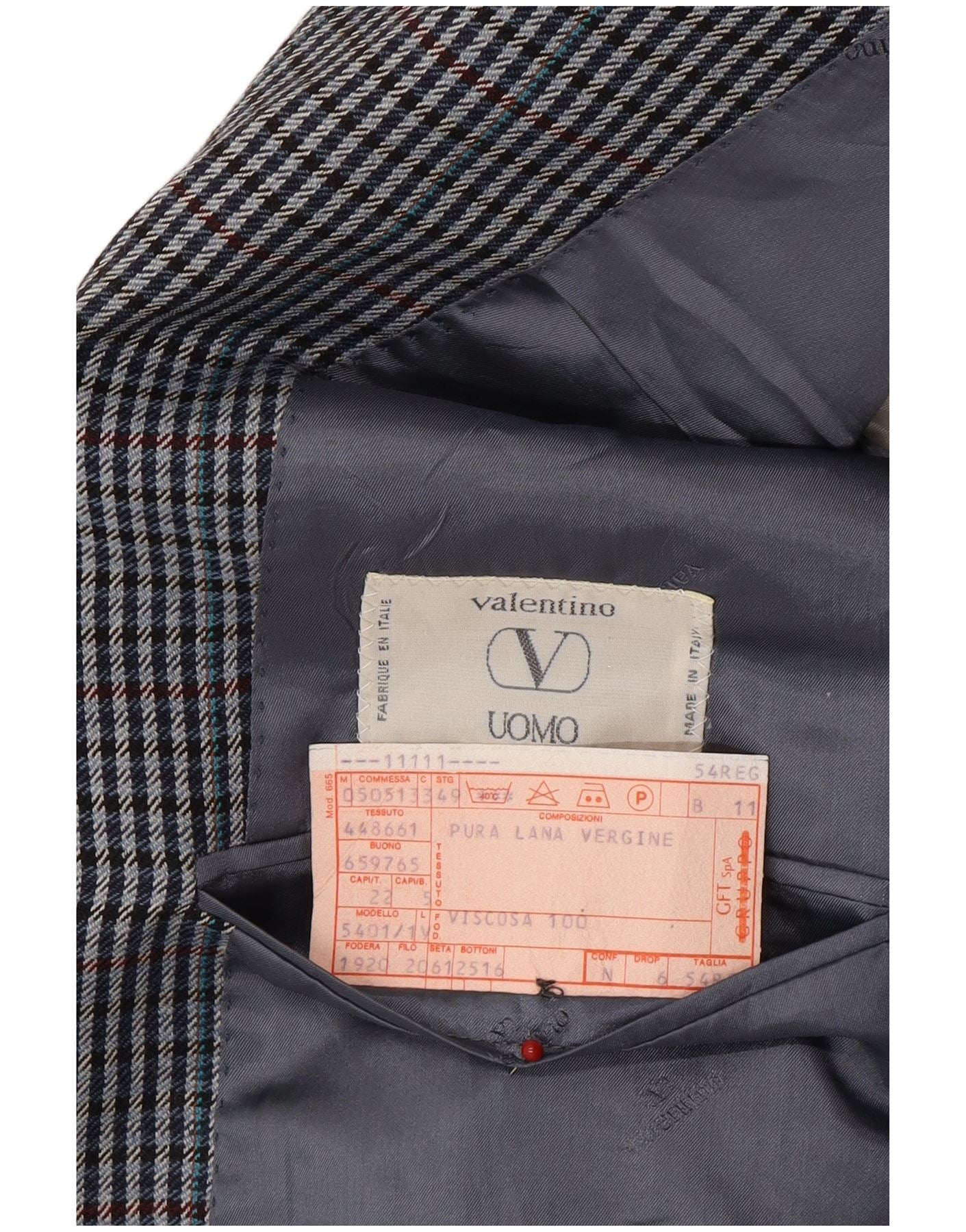 VALENTINO Mens Uomo 2 Button Blazer Jacket IT 54 2XL Navy Blue Gingham