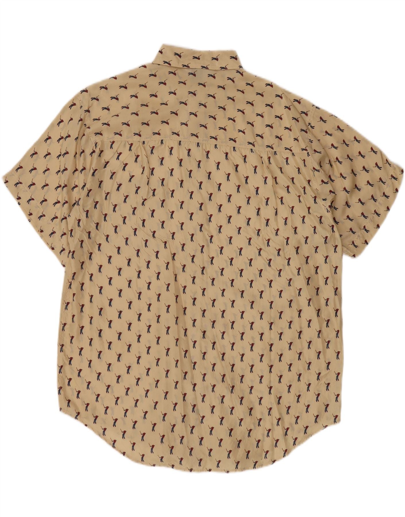 VAN ZON Chemise à manches courtes pour homme avec motif abstrait de golf en soie beige moyen